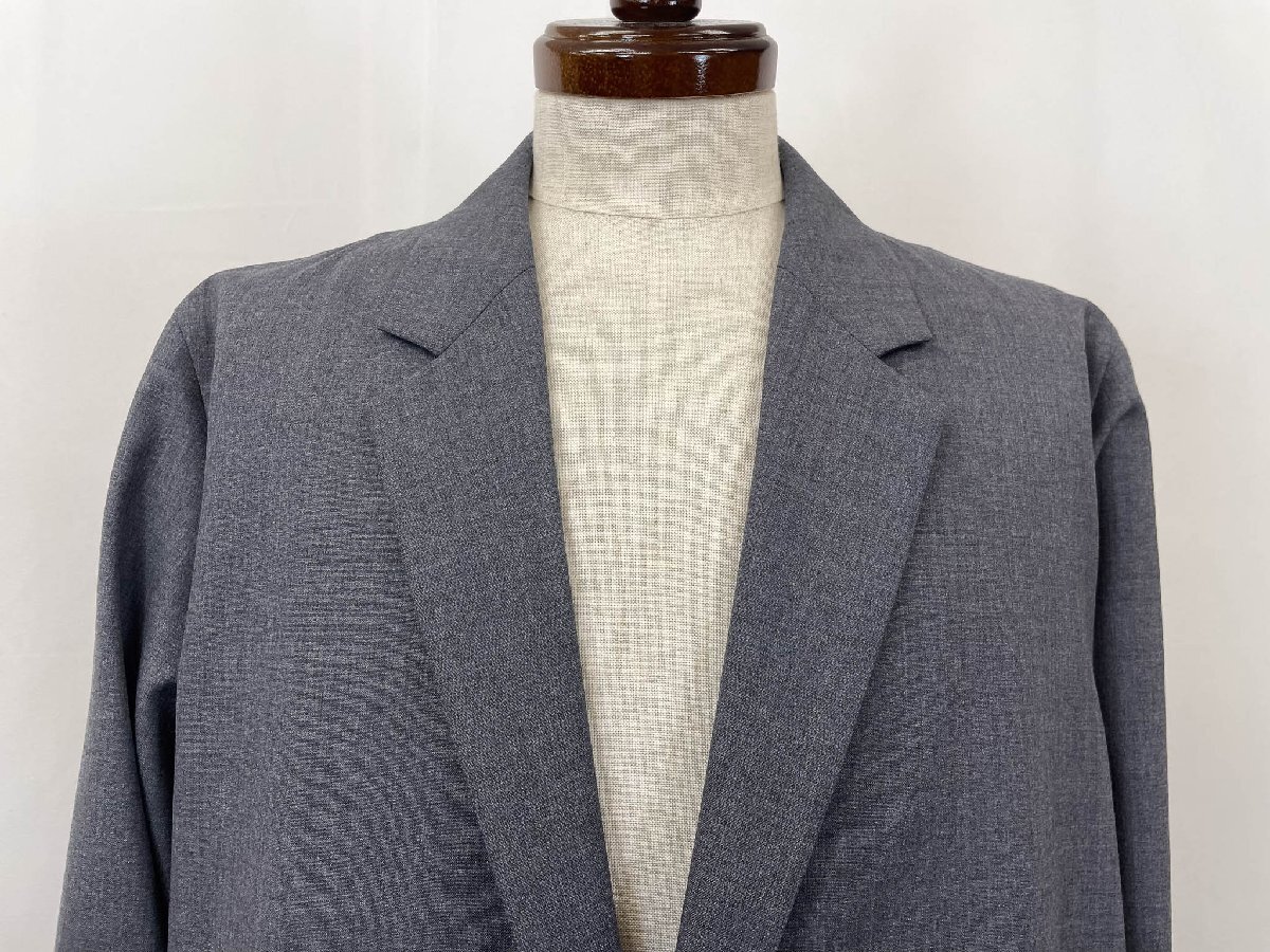 ・ジャケット・・・着丈(襟下から背中心で)約78センチ、身幅約57センチ、肩幅(直線で)約44センチ、袖丈約67センチ、ウエスト幅(第1ボタン付近で)約58センチ