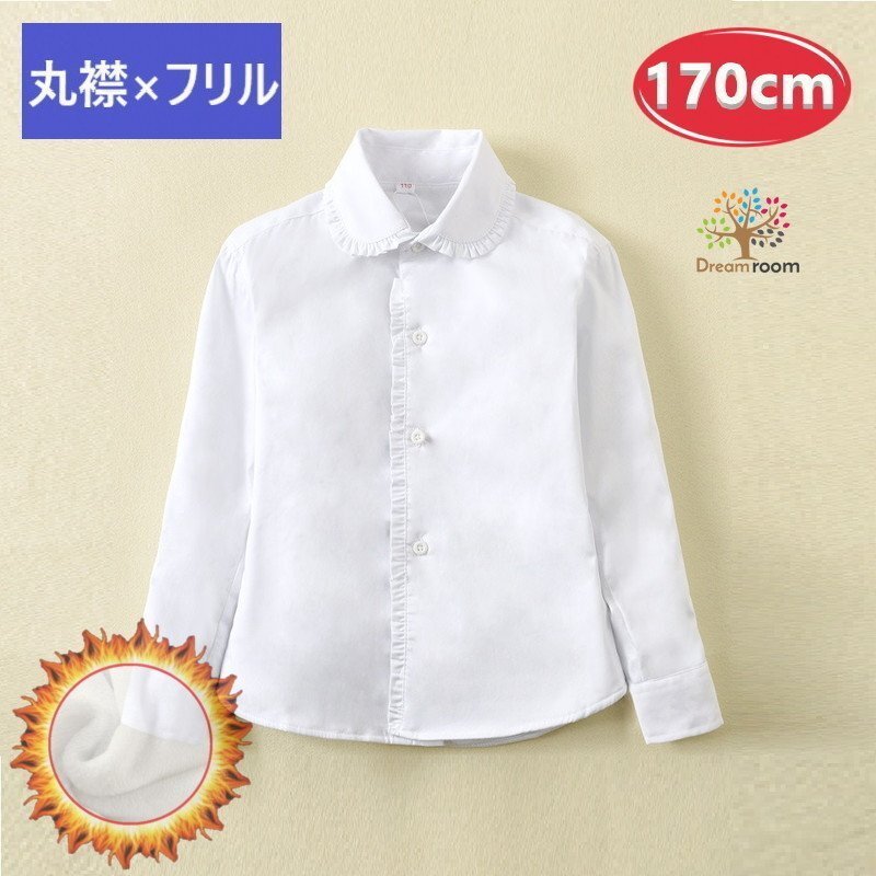 1スタ☆あったか~い!裏起毛★ 丸襟×フリル ブラウス【170cm】ワイシャツ 白シャツ 学生服 フォーマル 冠婚葬祭 制服