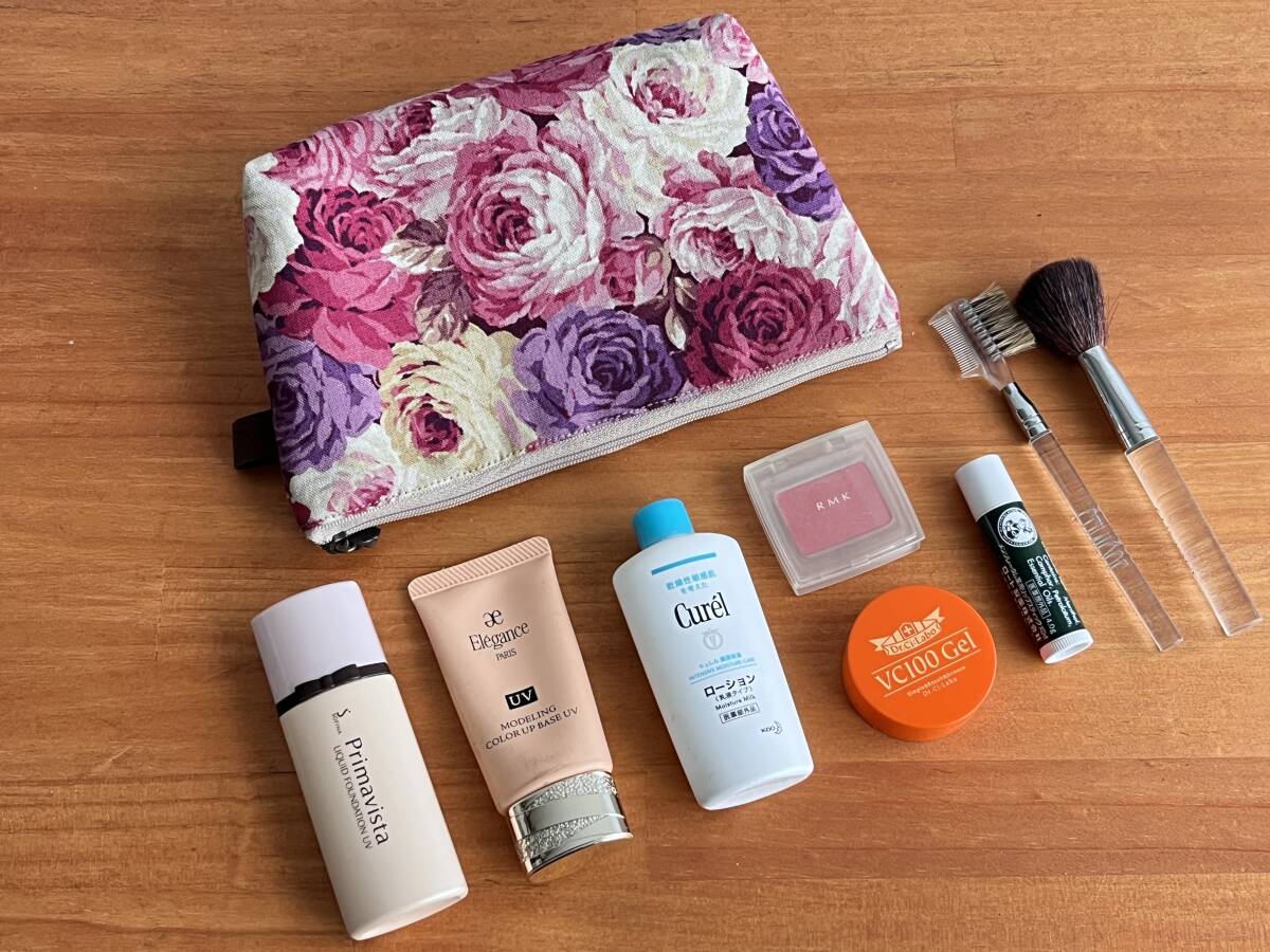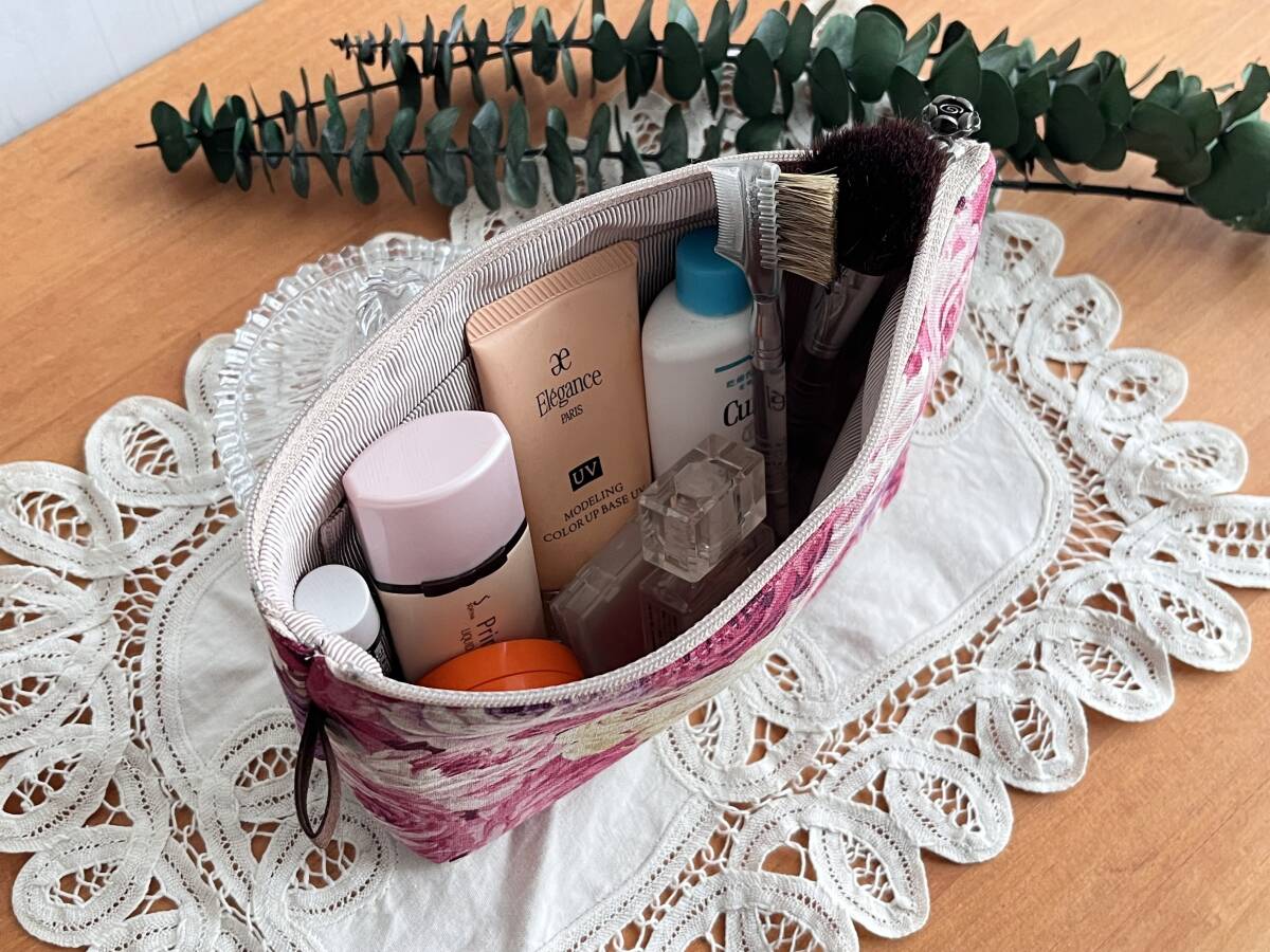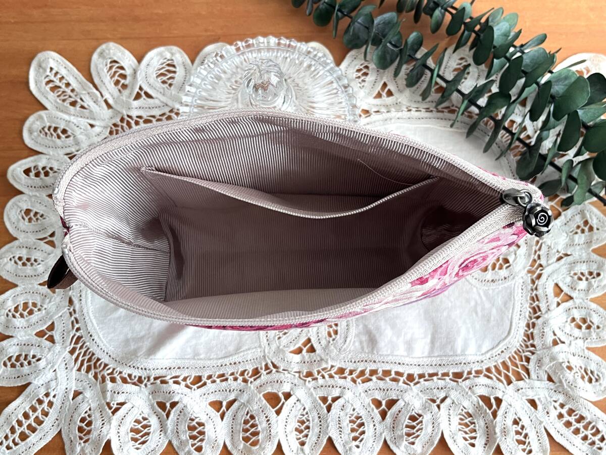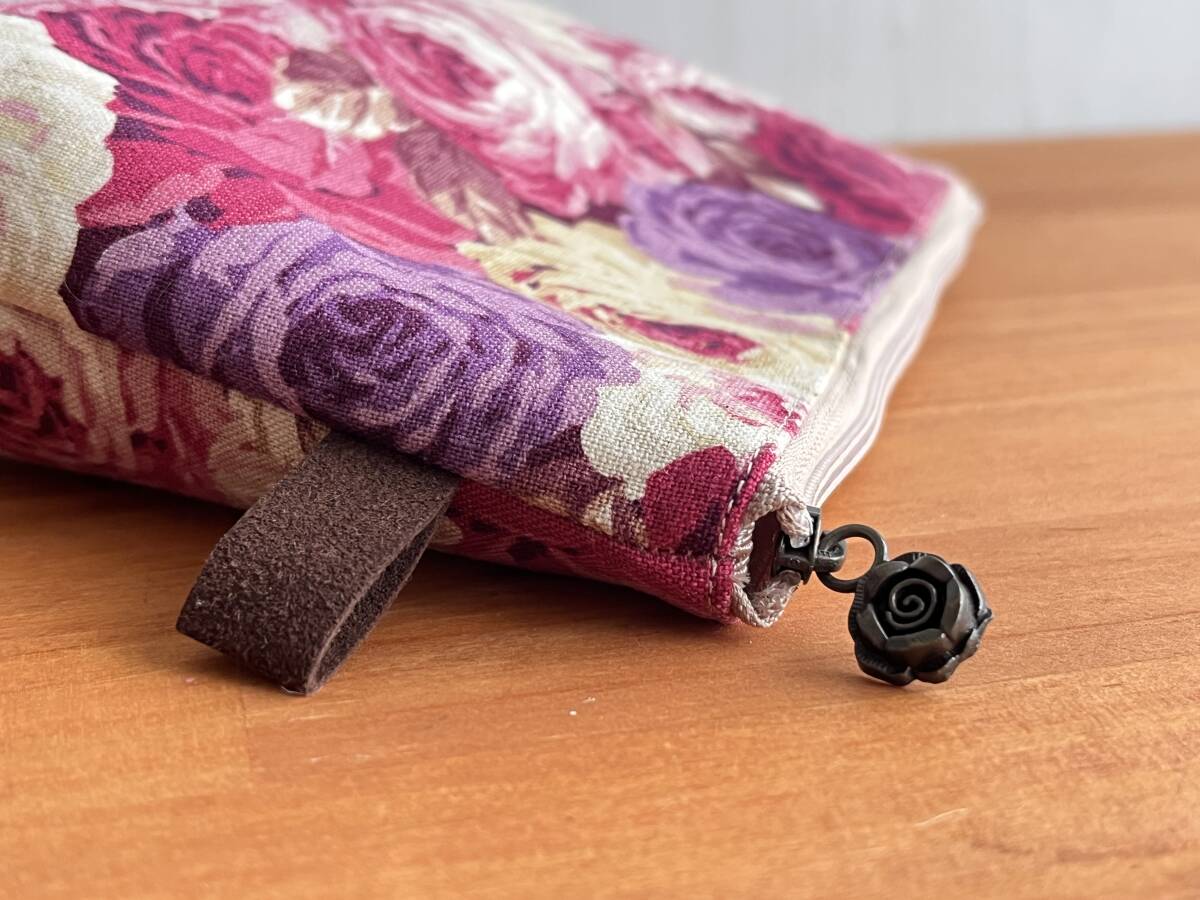 ハンドメイド+国産+コットンリネン+ローズ+バラ+ピンク系+花柄+ファスナーポーチ+コスメポーチ+c&s