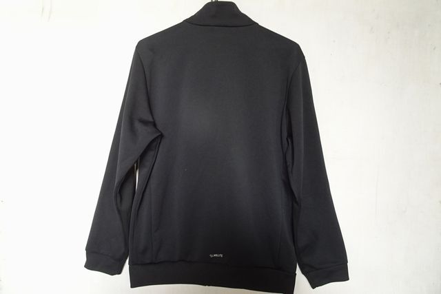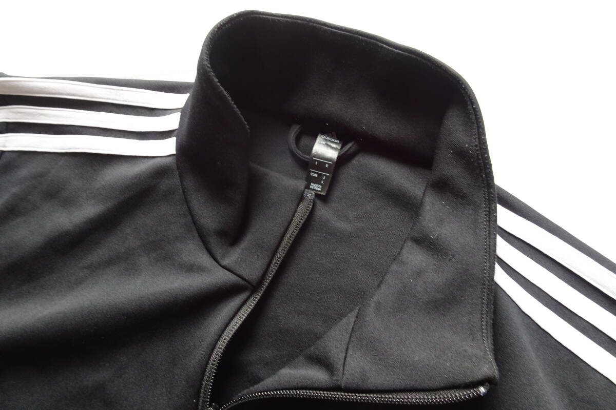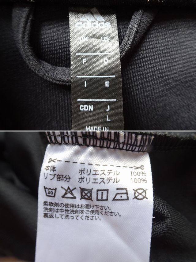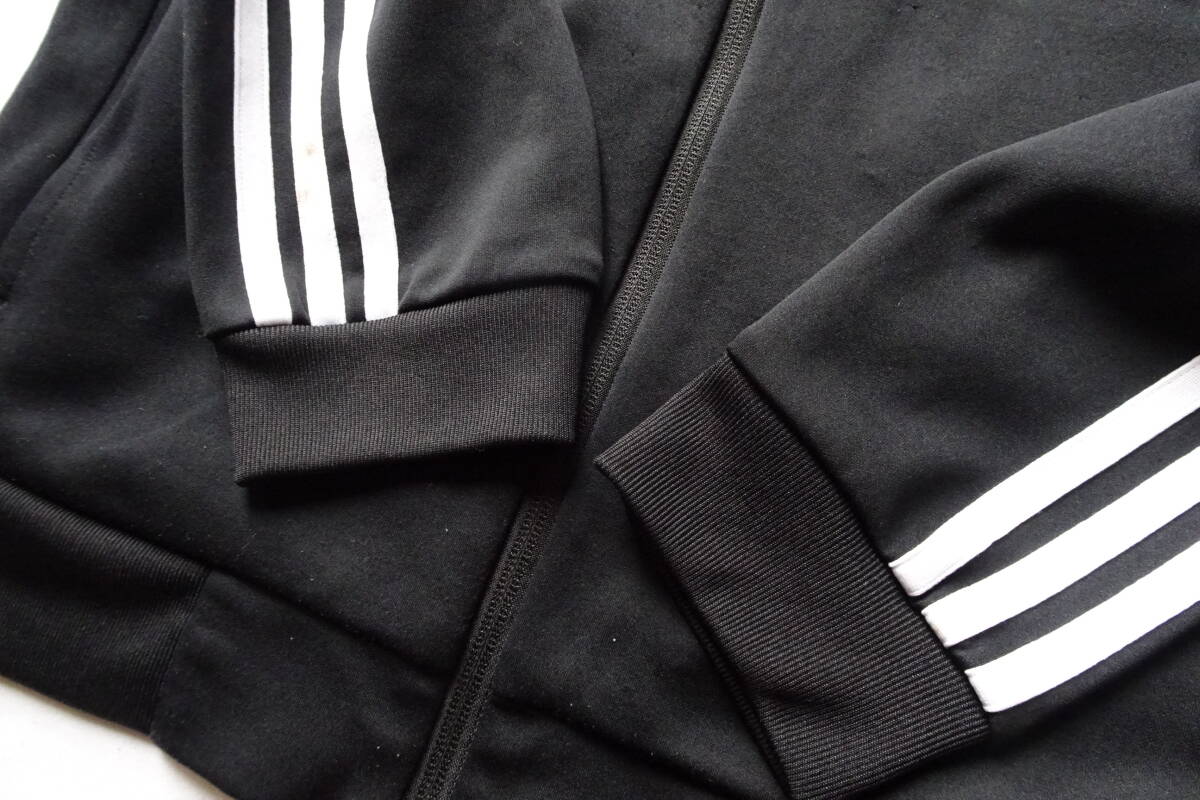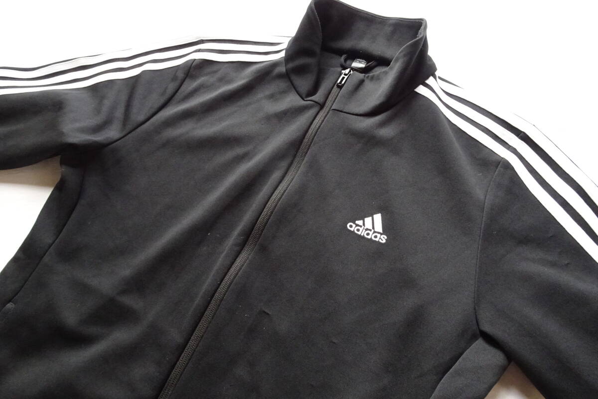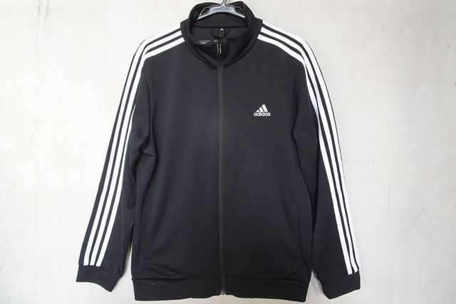 adidas/アディダス/長袖トラックジャケット/ジャージ素材/前ジップアップ/白3本ライン/スポーツ/黒/ブラック/Lサイズ(11/13R7)