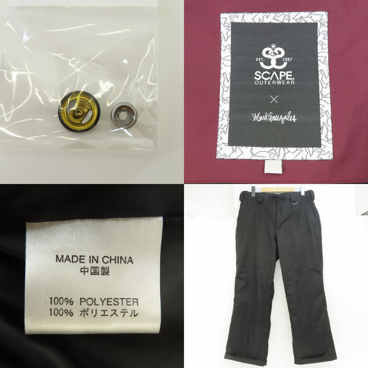 116 SCAPE × MARK GONZALES エスケープ マーク ゴンザレス スノーウェア スキージャケット パンツ Mサイズ 上下セット ※中古 □内容品:画像にあるもので全てです。 □サイズ 商品表記サイズ:M 【平置き実寸】 着丈:約75cm、身幅:約61cm、肩幅:約50cm、袖丈:約66cm ウエスト幅:約43cm、股上:約32.5cm、股下:約70.5cm、わたり:約33cm □状態 ・芳香剤のような香りが付着しています。 ・着用に伴うスレ、薄汚れ、シワ、ホコリ付着が見受けられます。 ・ジャケットのバックプリントに汚れ、内側のボタンが一部破損、 パンツは内側生地の足元部分に若干、毛玉付着、ヨレなどがあります。 ※クリーニングが必要な場合は購入者様でご対応ください。 ※モニターの環境により実物と画像の色が違うように見える場合があります。 ※画像では判別しづらいUSED品特有の薄い汚れや薄いキズ、細かいキズなどある場合があります。 |