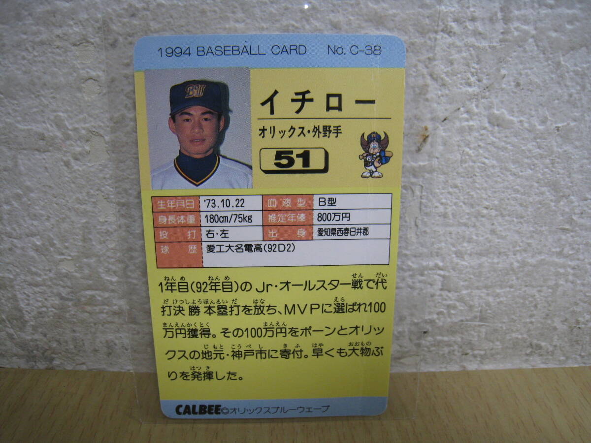 「I6A」B3. イチロー 1994 カルビー№.C-38 #38 ICHIRO SUZUKI オリックス CALBEE 野球 カード ※難あり(折れ)