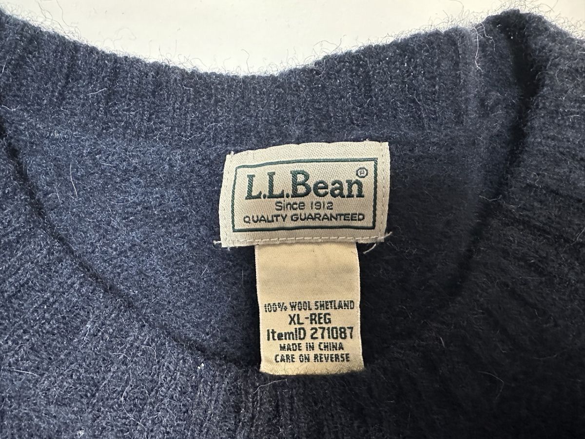 ●US USED ビッグサイズ US古着 L.L.Bean エルエルビーン ウールニット セーター ネイビー紺【XL】