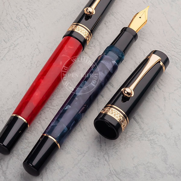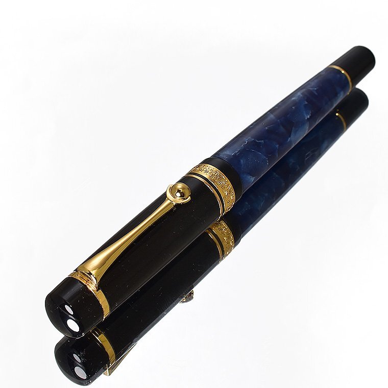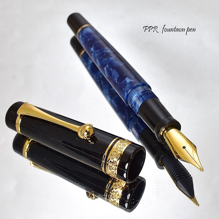 | 四季彩 万年筆 ミディアムサイズ ゴールドトリム 今回出品の色は”ネイビー”1本での出品です *セット販売ではございません* ペン先サイズ:M(中字)での出品です。 入荷時期によりペン先デザインが2種類ございますので ペン先のデザインが写真とは異なる場合がございます。 デザインの選択はできません事、予めご了承ください。 ![]() *セット販売ではございません【ネイビー1本】での出品になります FPR / Tanoshii Fountain pen 今回ご紹介するのは、第1弾 夏色、第2弾 秋色とご好評をいただいております Fountain Pen Revolution/ファウンテンペン・レボリューション社(FPR)の 「Tanoshii万年筆」より四季彩 第3弾の冬色です。 アメリカの企業だけあり、とてもユニークなネーミングですが、 他のシリーズ同様に、書き心地と美しさを両立した本格的な万年筆です。 日本には「春」「夏」「秋」「冬」の四季があり、それぞれの季節に様々な色が存在し、 その季節を彩り、私たちの目を楽しませてくれます。 そんな四季折々の色を万年筆で表現していくシリーズが、このTanoshiiシリーズの「四季彩」です。 今回の出品はミディアムサイズのネイビー1本での出品です。 ![]() *セット販売ではございません【ネイビー1本】での出品になります 冬色は、レッドとネイビーの2色。 今回の出品は【ネイビー】になります。 冬と言えばクリスマス・・クリスマスと言えばレッド!?というちょっと安直なイメージですが、 サンタクロースやポインセチア、プレゼントのラッピングなど街のワクワクした雰囲気に欠かせない カラーを万年筆にも取り入れてみました。 そしてもう1つ、ネイビーは冬のキリッと冷えた冬の夜をイメージしています。 夏の夜とは違い、静かで澄んだ空気を感じるこの時間がとても好きで、 こうして表現できることを嬉しく思います。 ![]() 以前からレジンの万年筆は取り扱ってきましたが、この四季彩に関してはそれを 超えたいという想いが強く、何度も試作品を作り直し、最終的にこの色にたどり着きました。 美しいレジンボディは、海外ブランドのモデルにも引けをとらないと思います。 ボディサイズはミニサイズとミディアムサイズの2種類をご用意しました。 今回ご紹介するのはミディアムサイズで、キャップを尻軸に挿さなくても、 適度な重量感で快適な筆記を行えます。 ![]() *こちらのいずれかのペン先デザインでのお届けとなります(選択不可) 肝心のペン先ですが、書き味に定評のあるドイツ製JOWO社、スチールニブを採用。 ミディアムは6号となります。 今回出品の字幅はM(中字)です。 使用用途や好みに合わせてお選び下さい。 コンバーター、カートリッジのどちらも付属しておりますので、ご購入いただいてから、 すぐにご利用いただけます。 四季彩万年筆 冬色で、ぜひ季節を感じながらゆったりとした筆記の時間をお楽しみください。 ![]() *セット販売ではございません【ネイビー1本】での出品になります ******************************************************************** ≪詳細≫ 四季彩 万年筆 ミディアムサイズ ゴールドトリム カラー : ネイビー ペン先 : ステンレス ドイツ製JOWO社 サイズ : 6号(M:中字) 長さ : 145mm(キャップ装着)/135mm(キャップ外した時) 径 : 15mm/キャップ、13mm/ボディ 重さ : 22g キャップ : ねじ込み式(尾栓装着/ねじ込み式) 機構 : カートリッジ(欧州規格)/コンバーター両用式 材質 : ボディ/レジン キャップ/アクリル樹脂 クリップ・トリム/ステンレススチール製ゴールド仕上げ 付属品 : 簡易紙ケース・コンバーター内蔵・カートリッジ1本 新品未使用 ※ボディ表面に小さな線が入っている場合がございますが、 こちらは傷ではなくモザイク模様によるものですので、 商品の特性としてご理解ください。 ※入荷時によりペン先デザインが2種類ございますが選択はできません。 上記写真の(ペン先)いずれかのデザインでのお届けになります事、ご了承ください。 ******************************************************************** |