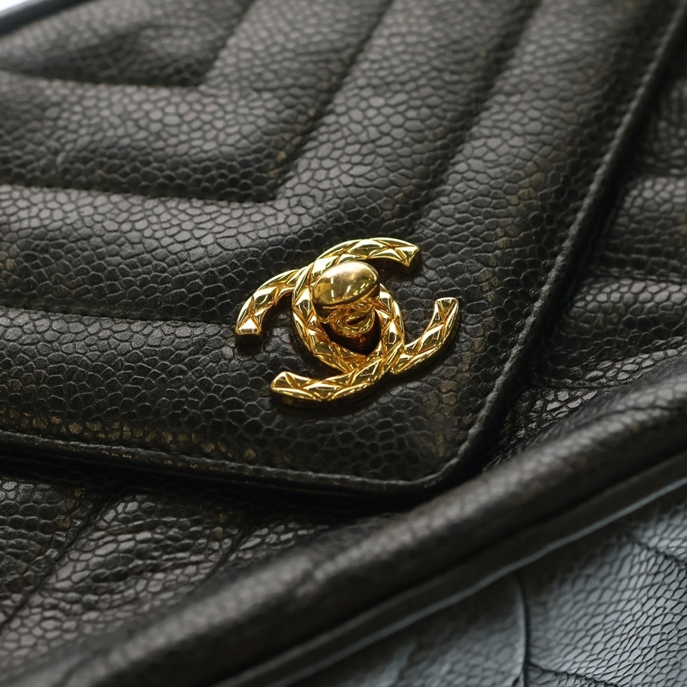 CHANEL シャネル シェブロン Vステッチ チェーン ショルダーバッグ キャビアスキン ブラック ゴールド金具