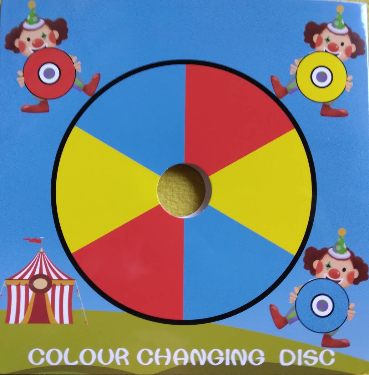 ★1枚のディスクをケ-スに入れ穴に赤色リボンを通し、おまじないをかけケースからディスクを引き抜くと赤色ディスクに変化します