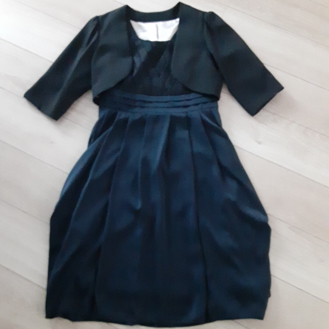 美品 フォーマルワンピース ジャケットセット 11号 ブラック ネイビー ボレロ