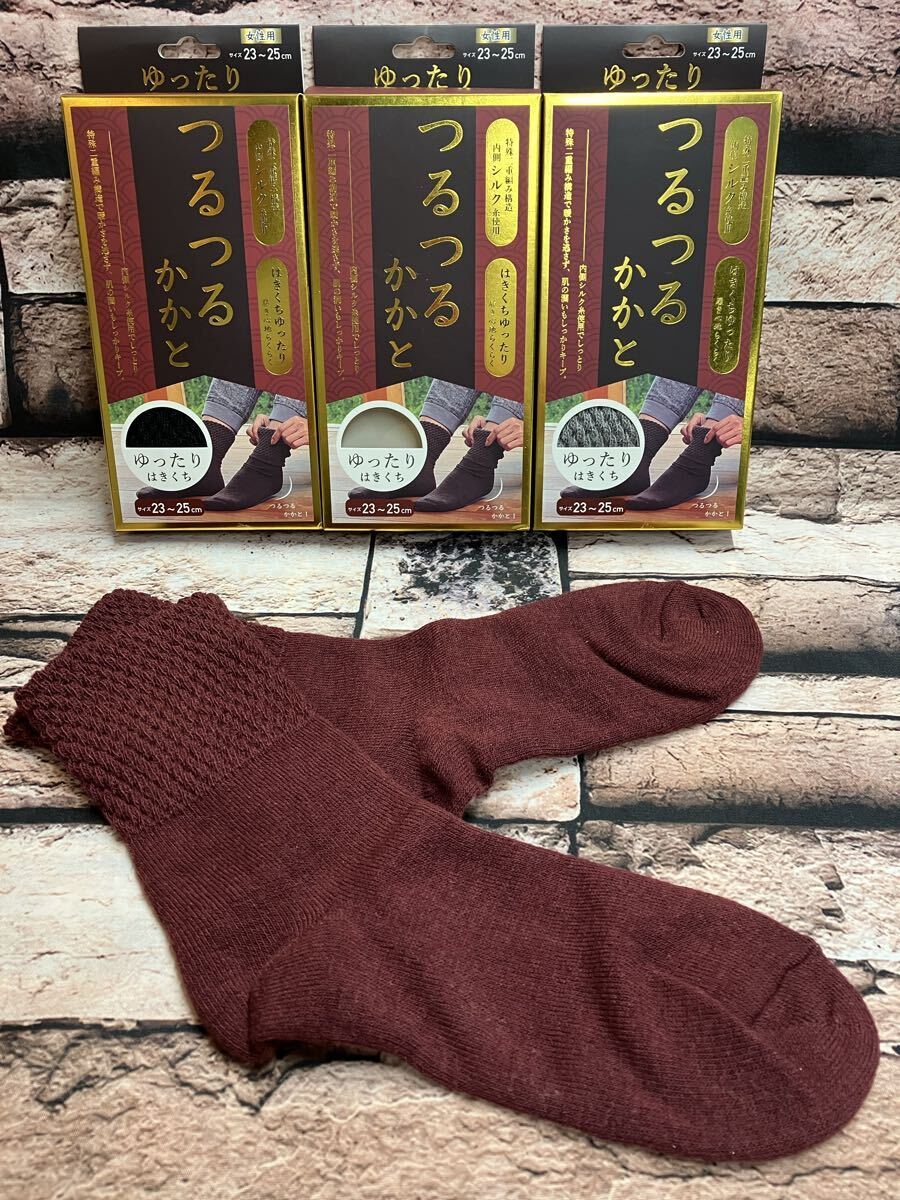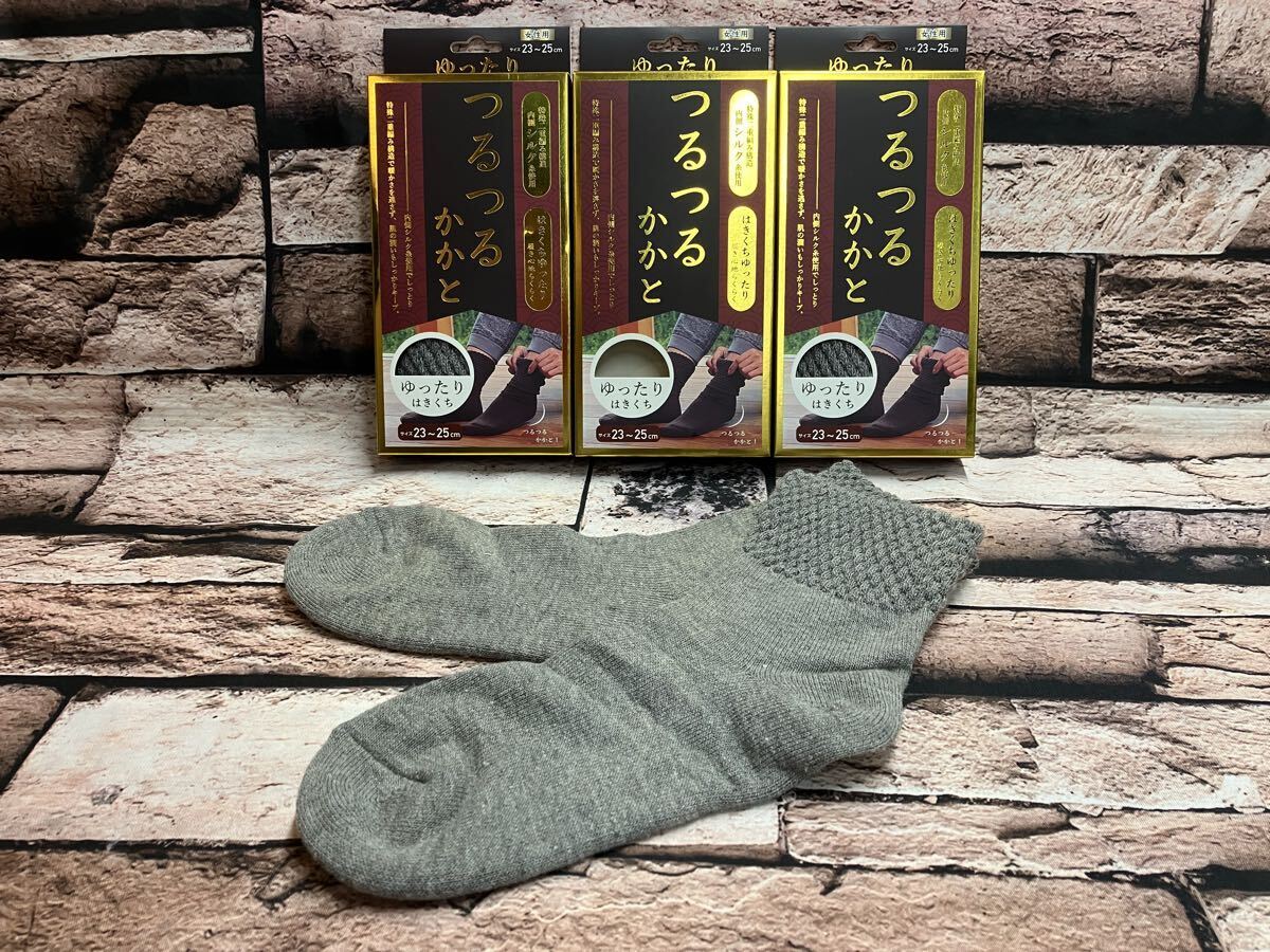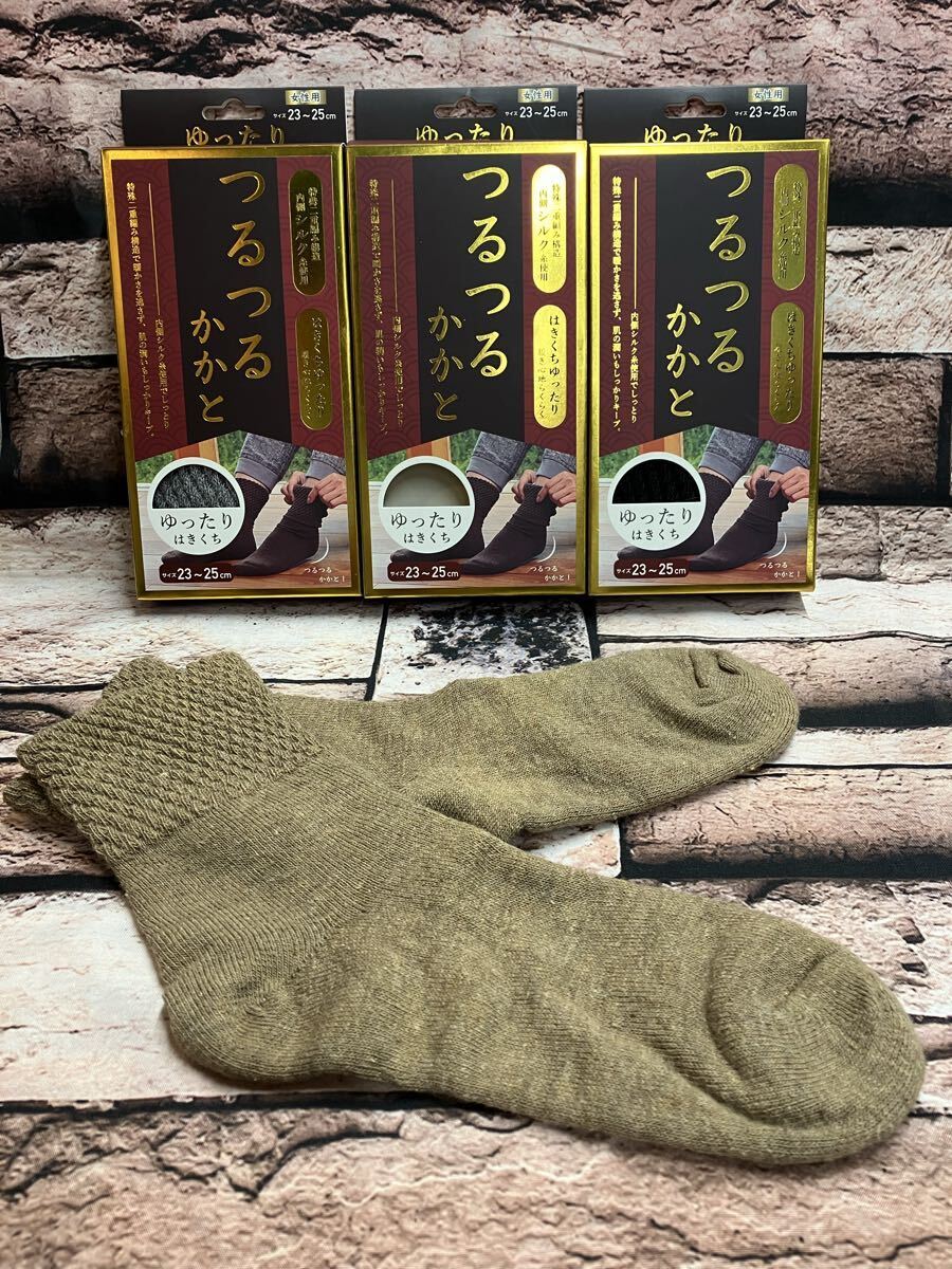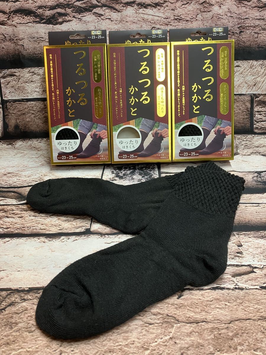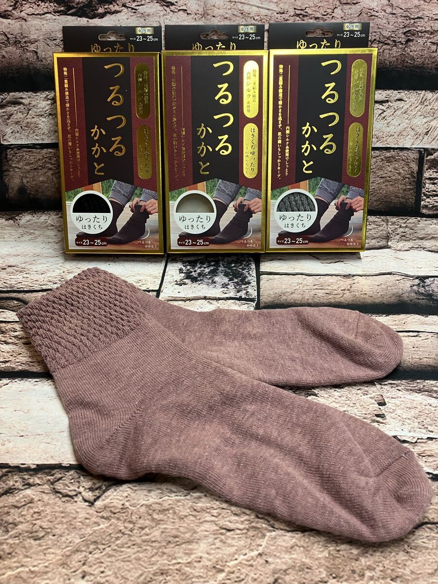 『画像から3足組』内側天然シルク使用でかかとツルツル!履き口ゆったりで履き心地抜群!特殊二重編み構造ソックス