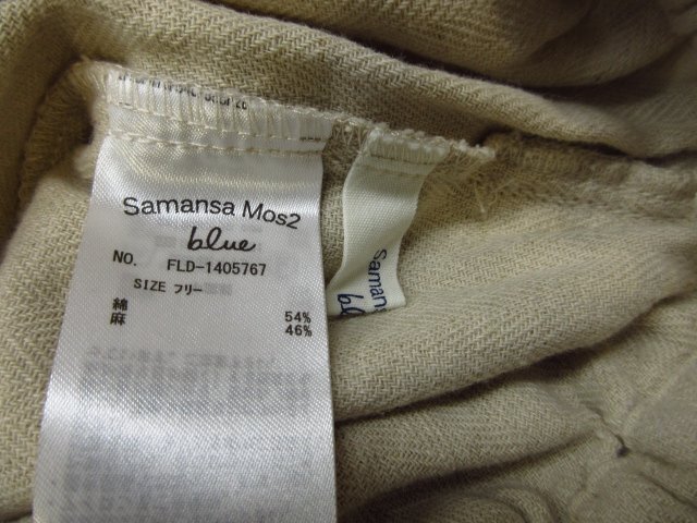 m4264 美品 samansa Mos2 blue ズボン パンツ フリーサイズ ウエストゴム キナリベージュカラー 綿麻混紡 サマンサモスモス