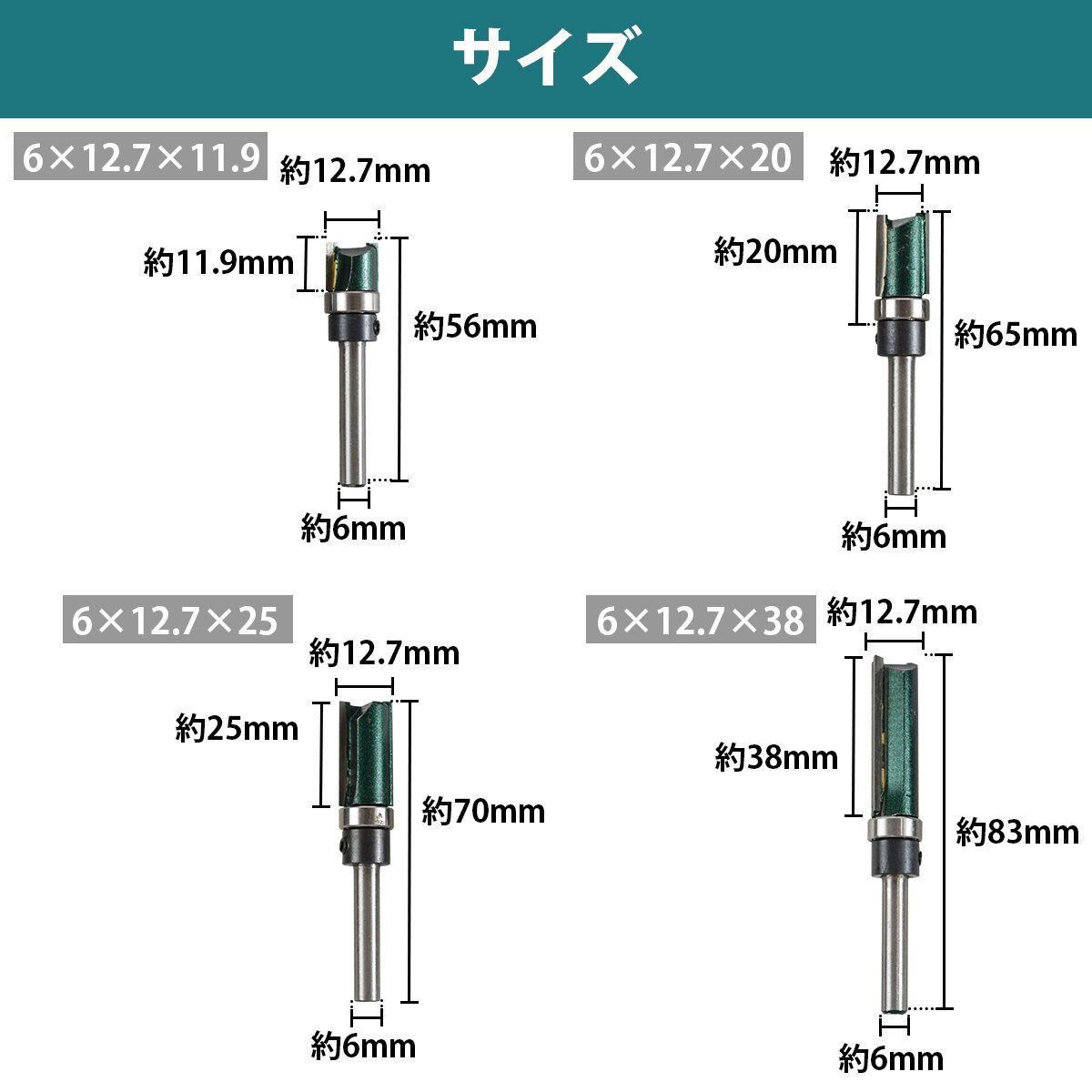 【送料無料】6mm軸 ストレートビット 4本セット 超硬刃 ルータービット トリマービット カッター 木工用 溝彫り 面取り 切削工具 ルータ