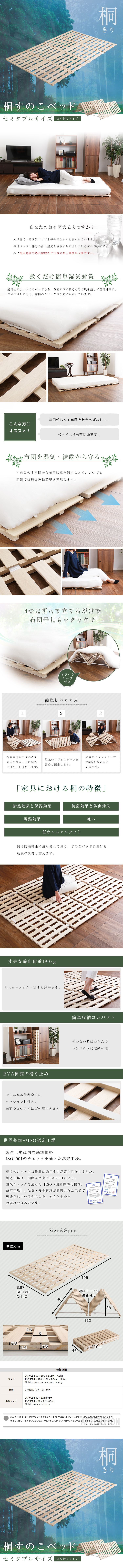 【ポイント】 通気性バツグンのすのこベッドです。 材質はすのこベッドにおける最良の桐材を使用しました。 頑丈な耐荷重180kgです。 布団も干せる4つ折りタイプです。 |