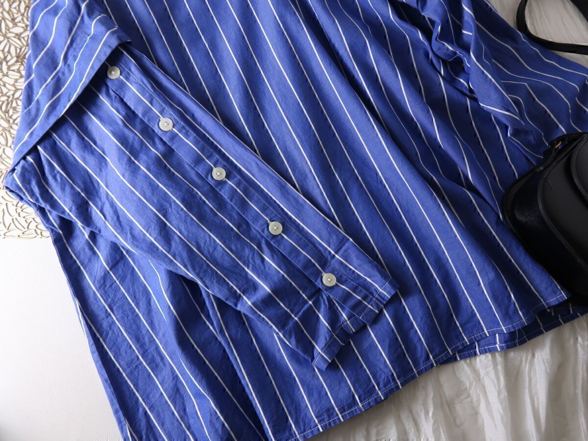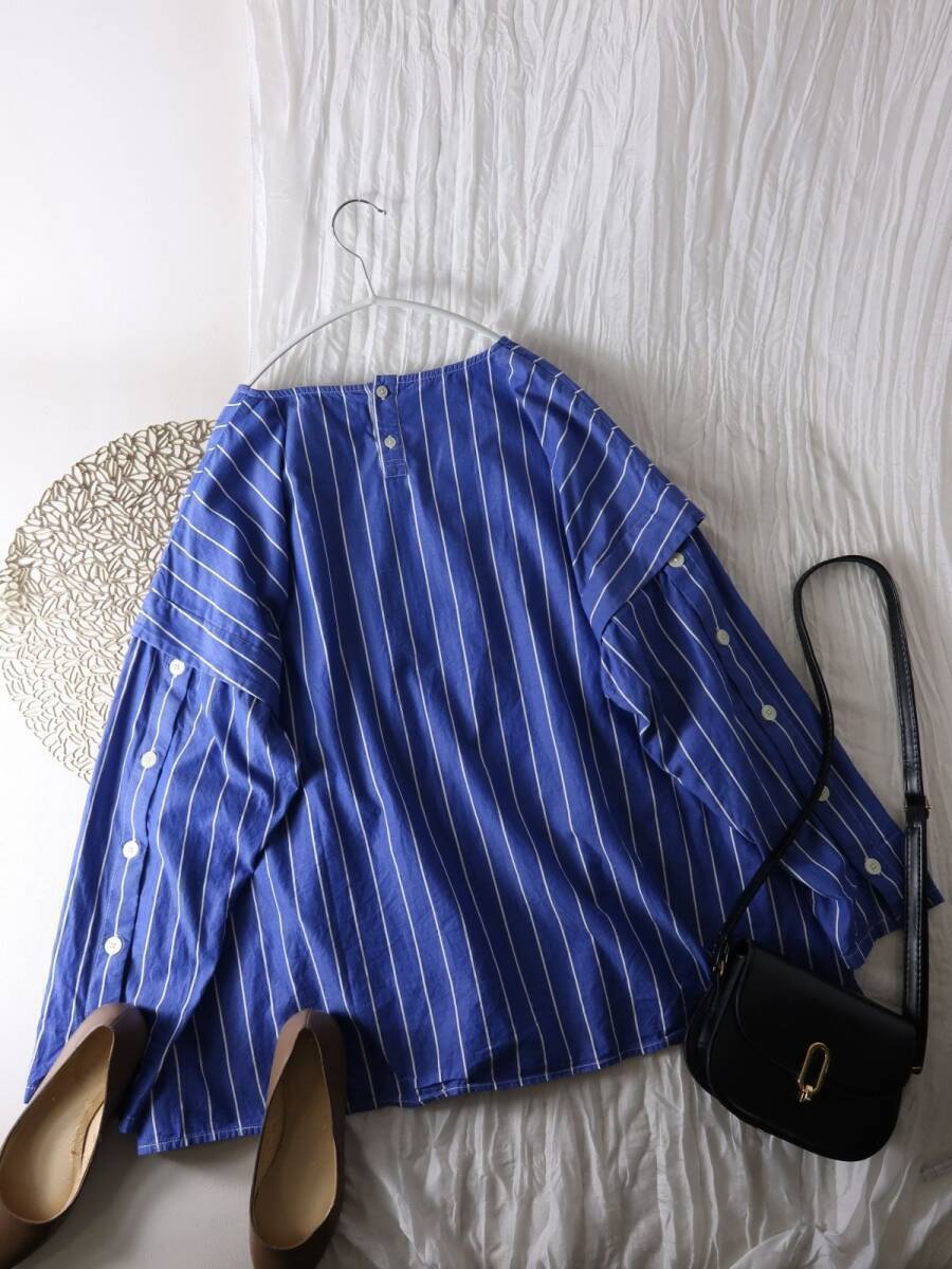 サニークラウズ Sunny Clouds×shuttle notes☆大きいサイズ☆洗える 綿100% 袖ボタン 肩タック ストライプブラウス 3Lサイズ☆A-O 2535