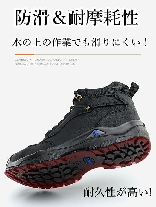 【防水機能】防水性に優れた合成皮革を採用して、雨の日でも水がしみ込みません。靴内へ水が侵入するのを防ぎます。ハイカットなので足首まで保護してくれます!