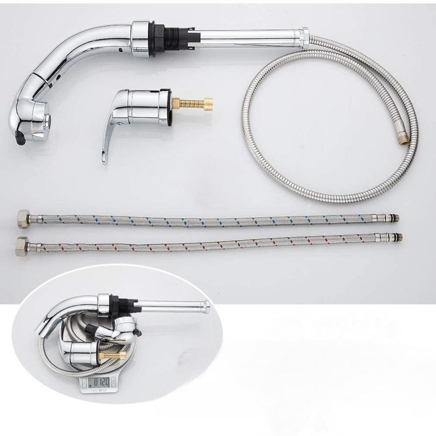 ■【ホース引き出し式】洗面水栓のホースは最長50cm引き出し可能です,洗髪、洗面台をお掃除、場合はにはとても便利です。