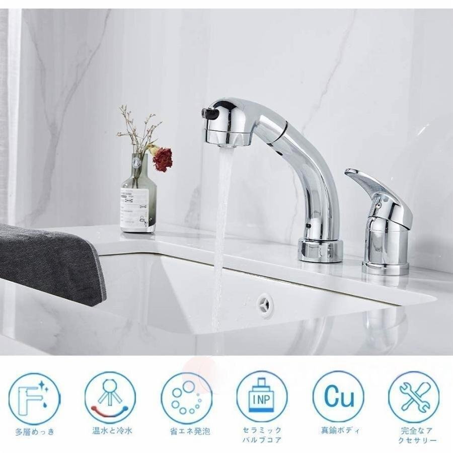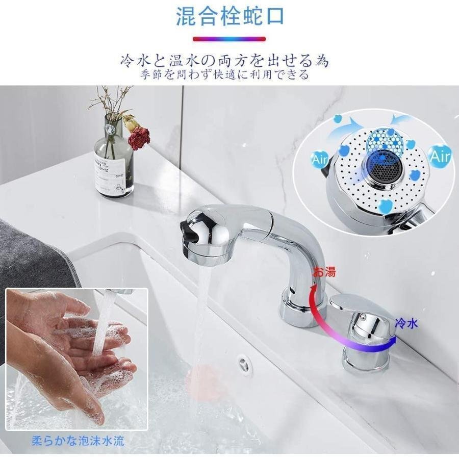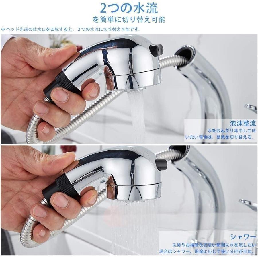 洗面台蛇口 洗面水栓 2つの水流モード 360°回転 吐水口昇降 シングルレバー混合栓 2穴台付き ホース引き出し式 shw153