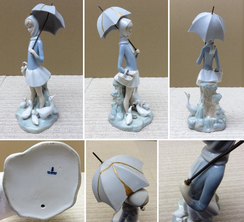 中古 LLADRO リヤドロ NAO 陶器 人形 フィギュリン 4点セット 「特別な日」6480/「五月の花」5467/「傘を持つ少女とアヒル」/「旅をする少