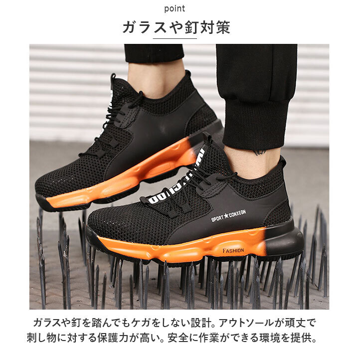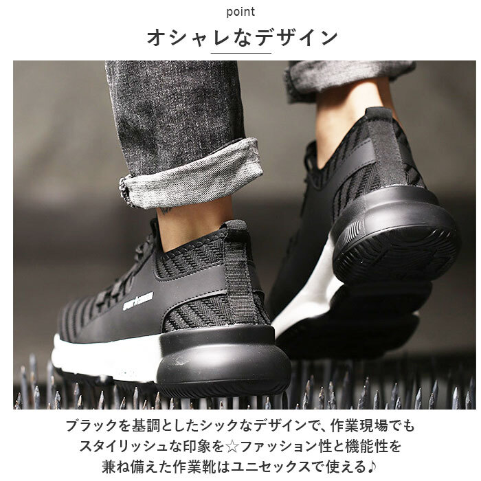 | 商品説明 | ・・作業現場での信頼性を高めるユニセックスで使える丈夫な作業靴。 ・【安心して作業に集中】 ・長時間の使用でも破損しにくく、安心して作業に集中できる耐久性に優れた作業靴。 ・【つま先保護】 ・つま先部分が強化され、石が落ちてきても痛くない。作業中のアクシデントから足を守り、安全性を確保。 ・【ガラスや釘対策】 ・ガラスや釘を踏んでもケガをしない設計。アウトソールが頑丈で刺し物に対する保護力が高い。安全に作業ができる環境を提供。 ・【アウトソールの屈曲性】 ・アウトソールが柔らかく屈曲性があり、歩行時の快適さを追求。疲れにくい設計で長時間の作業でも足への負担を軽減。 ・【軽量】 ・軽量設計で、動きやすさと快適さを実現。長時間の作業でも疲れにくく、作業効率を向上。 ・【凸凹アウトソール】 ・大きな凸凹が特徴のアウトソールは、柔らかく履き心地も◎凸凹面や脚立などの昇り降り時にグリップとして活躍。 ・【通気性がよい】 ・通気性がよく、高温になる真夏の作業時も足元快適! ・【いつも清潔】 ・インソールは取り外し可能で、お手入れがしやすく、いつも清潔! ・【オシャレなデザイン】 ・ブラックを基調としたシックななデザインで、作業現場でもスタイリッシュな印象を☆ファッション性と機能性を兼ね備えた作業靴はユニセックスで使える♪ |