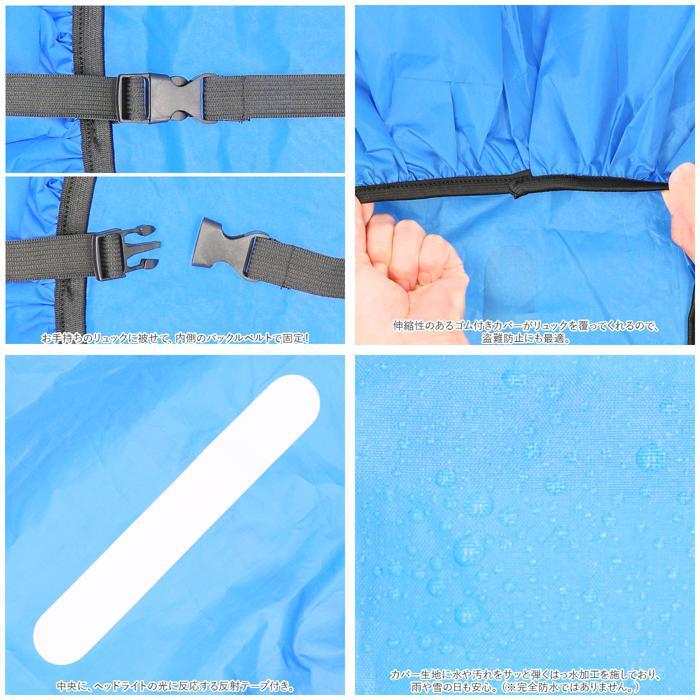 | 商品説明 | ・・リュックをすっぽりと覆って、雨から荷物をしっかり守る!リュックカバーが登場。 ・お手持ちのリュックに被せて、内側のバックルベルトで固定! ・ベルトのゴム紐は長さ調節可能。リュックのサイズに合わせてぴったりフィット! ・伸縮性のあるゴム付きカバーがリュックを覆ってくれるので、盗難防止にも最適。 ・カバー生地に水や汚れをサッと弾くはっ水加工を施しており、雨や雪の日も安心。(※完全防水ではありません。) ・中央に、ヘッドライトの光に反応する反射テープ付き。 ・リュックの上に付けても負担にならない軽量設計。 ・使わない時は折りたたんで付属の収納袋に入れれば、コンパクトサイズに!いつでもリュックの中に忍ばせておけるのが嬉しい◎ ・リュックの大きさに合わせて選べる3サイズ展開。(※サイズ表をご確認ください。) ・通勤・通学や、自転車移動、山登りやレジャーシーンで活躍。 |