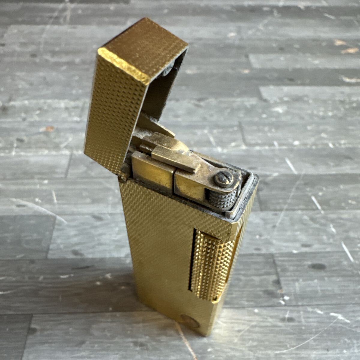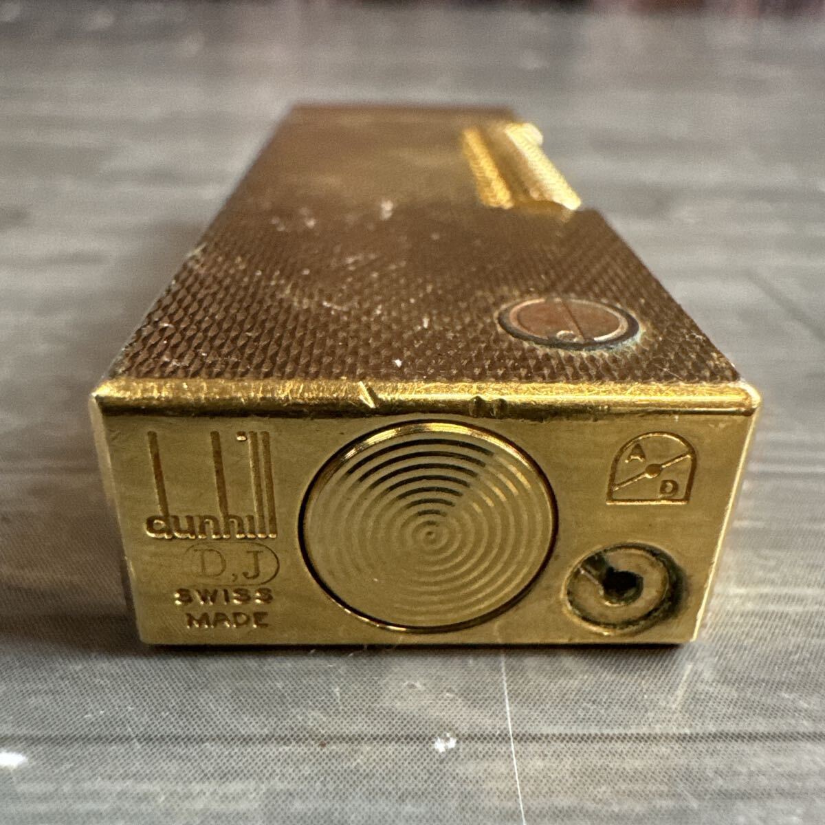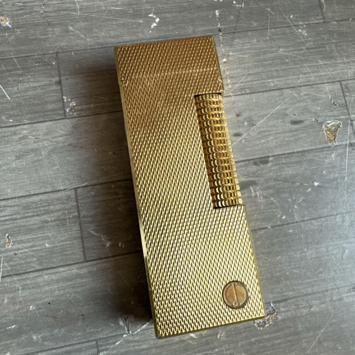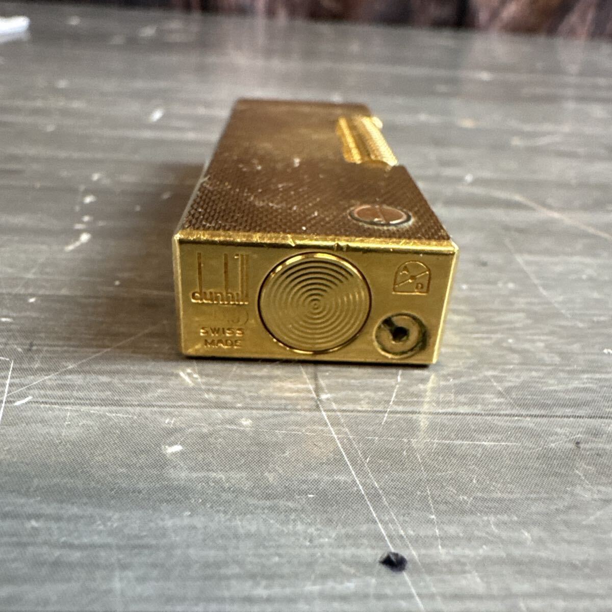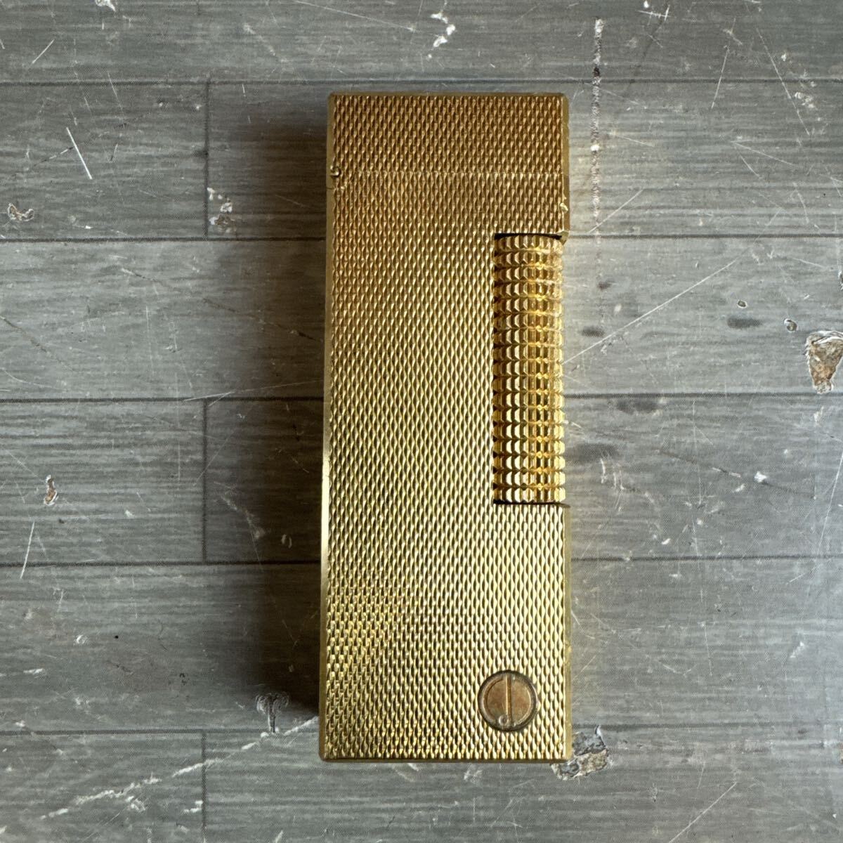 Dunhill ダンヒル ロゴ金具付き 総柄 スクエアフォルム ローラー式 ライター ゴールド