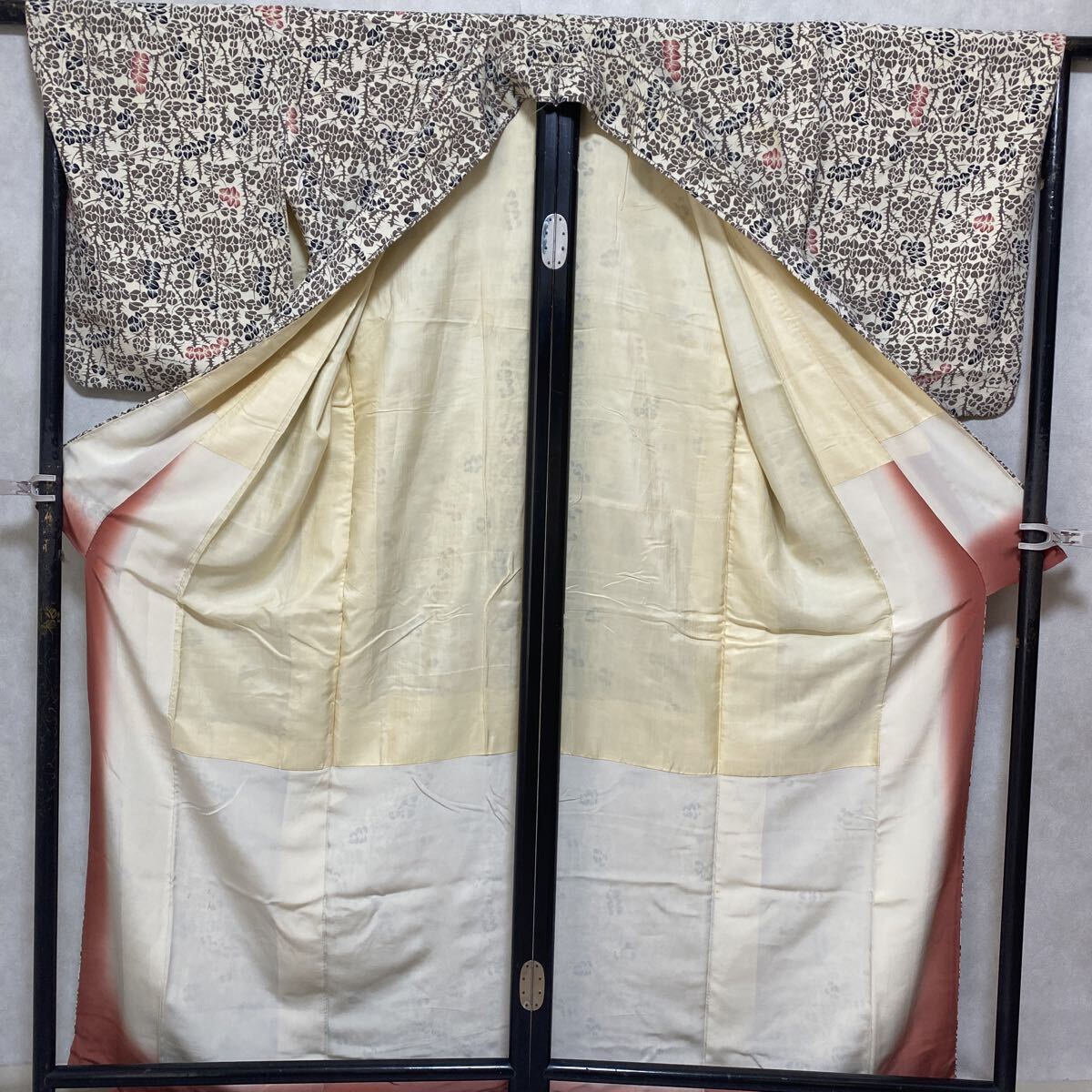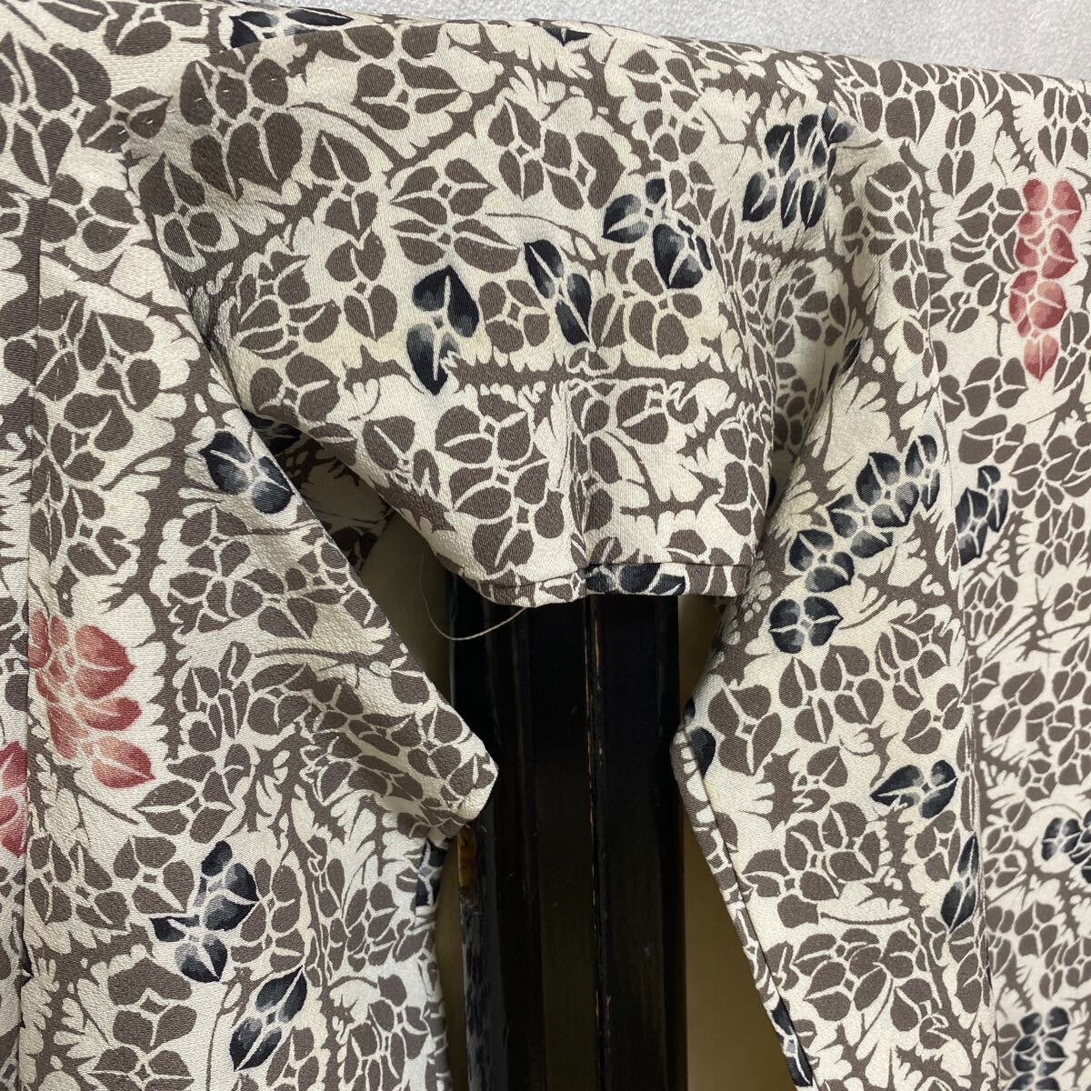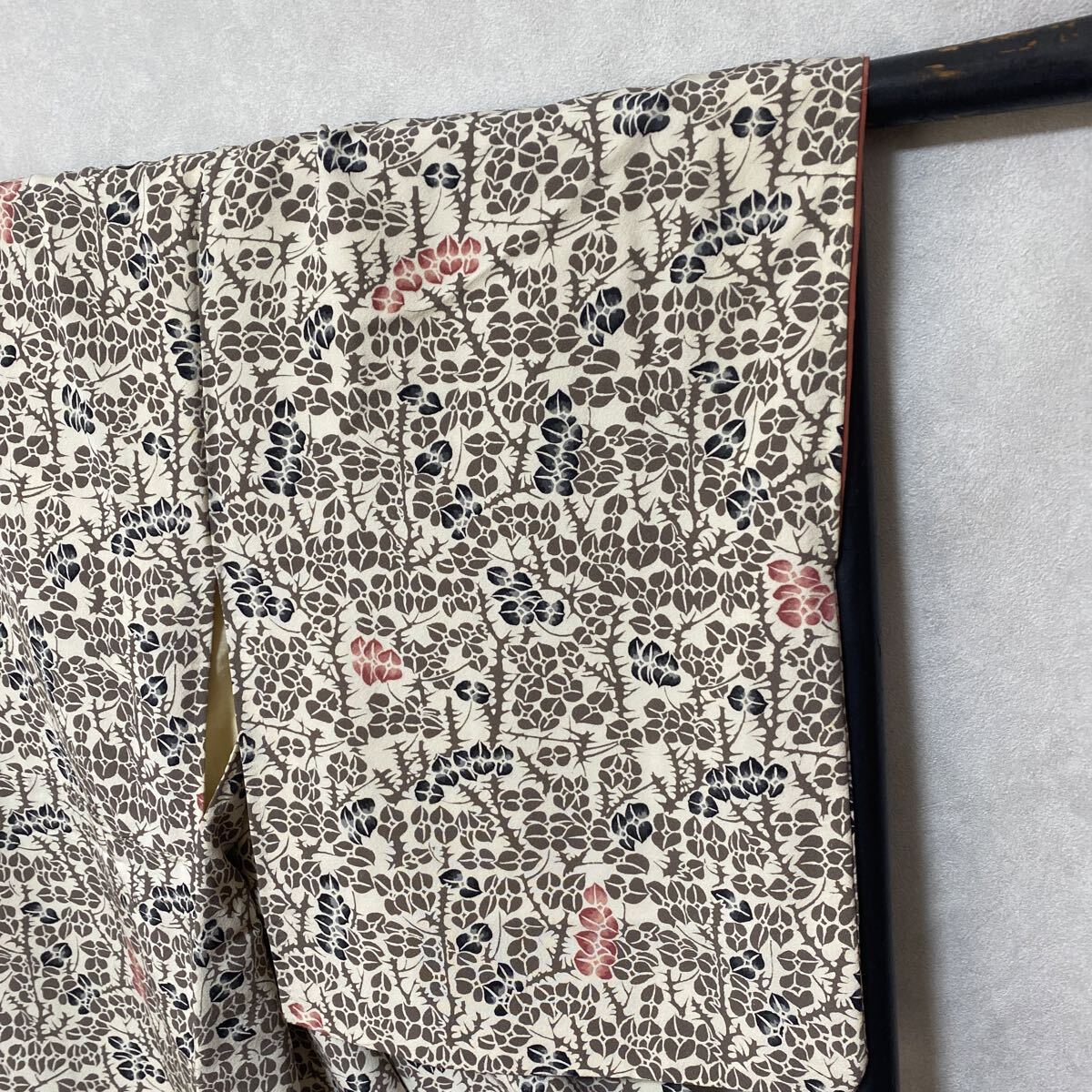 アンティーク 着物 正絹 白 草花 昭和レトロ 大正ロマン モダン 和洋折衷コーデ リメイク 25さ13-17s