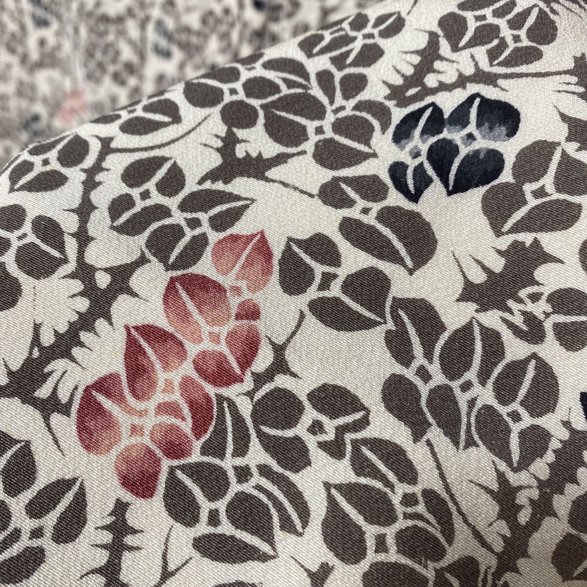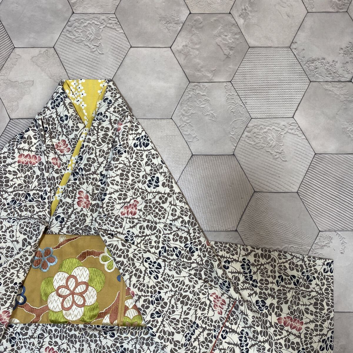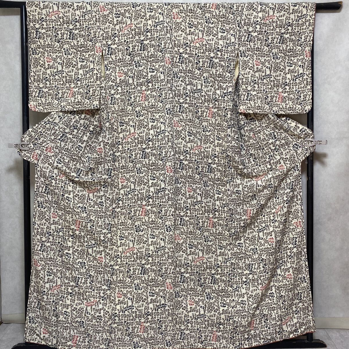 アンティーク 着物 正絹 白 草花 昭和レトロ 大正ロマン モダン 和洋折衷コーデ リメイク 25さ13-17s