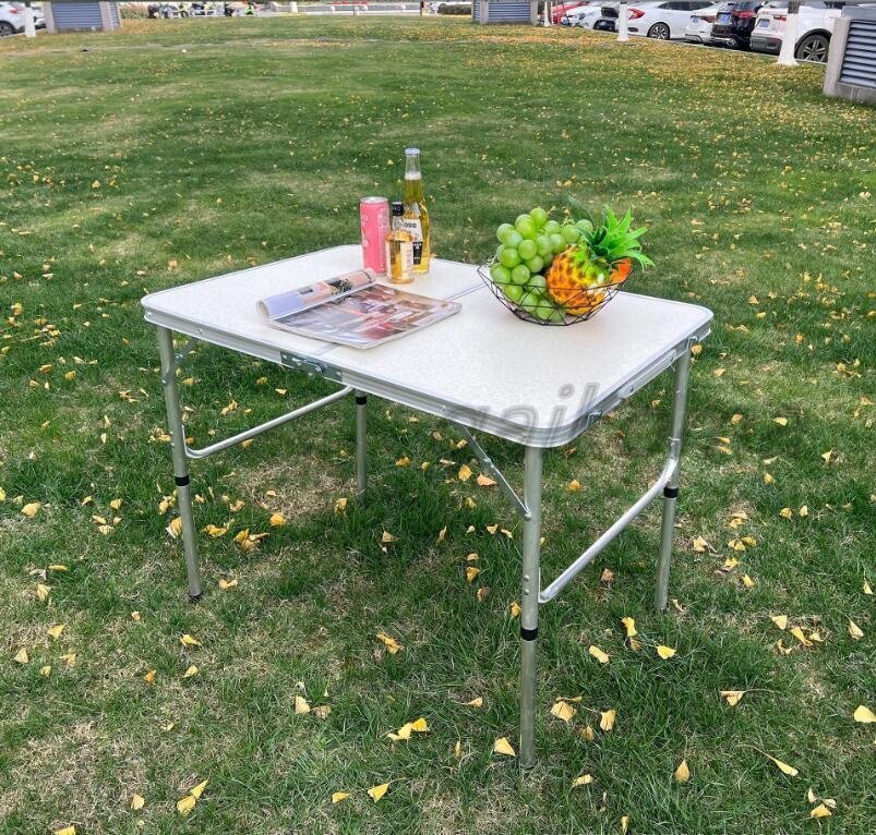 アウトドア 折りたたみ アルミテーブル パラソル穴 90×60cm 高さ2段階 コンパクト 軽量 レジャー キャンプ 白