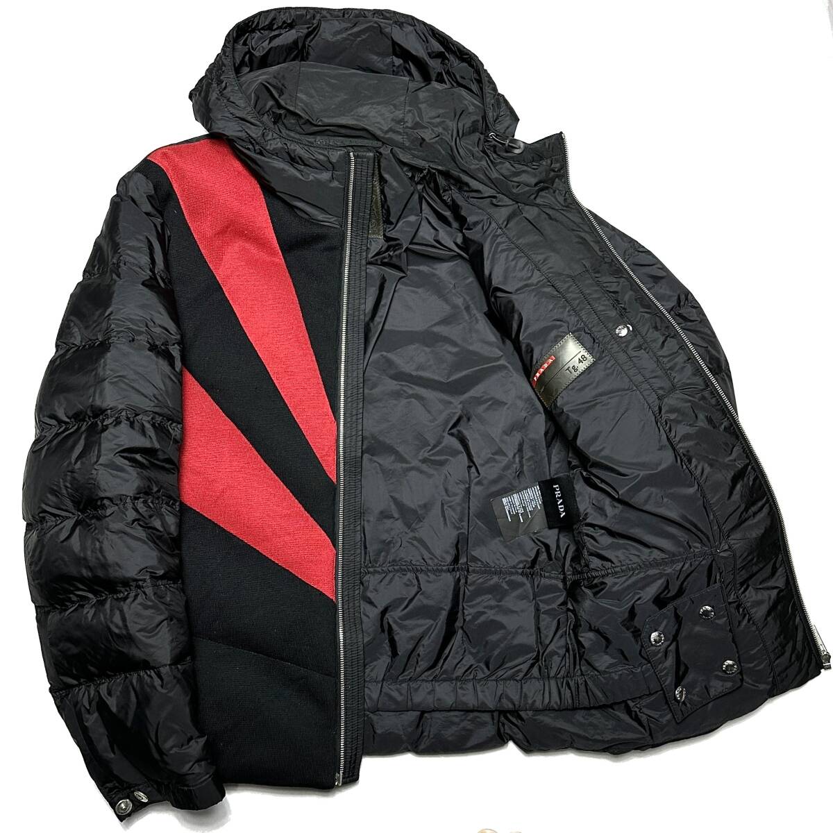 定価22万 正規品 PRADA nylon knit switch down jacket 48サイズ ブラック 黒 プラダ フード付ナイロンダウンジャケット ブルゾン