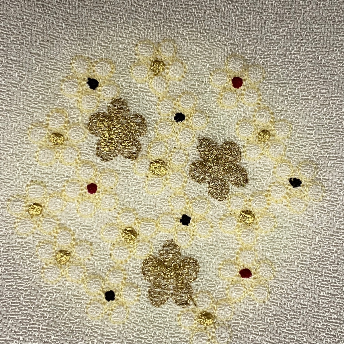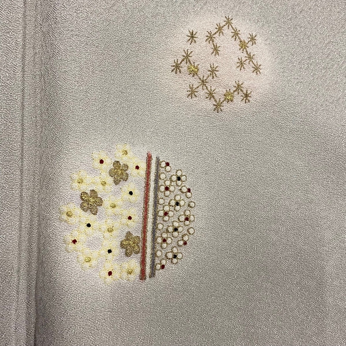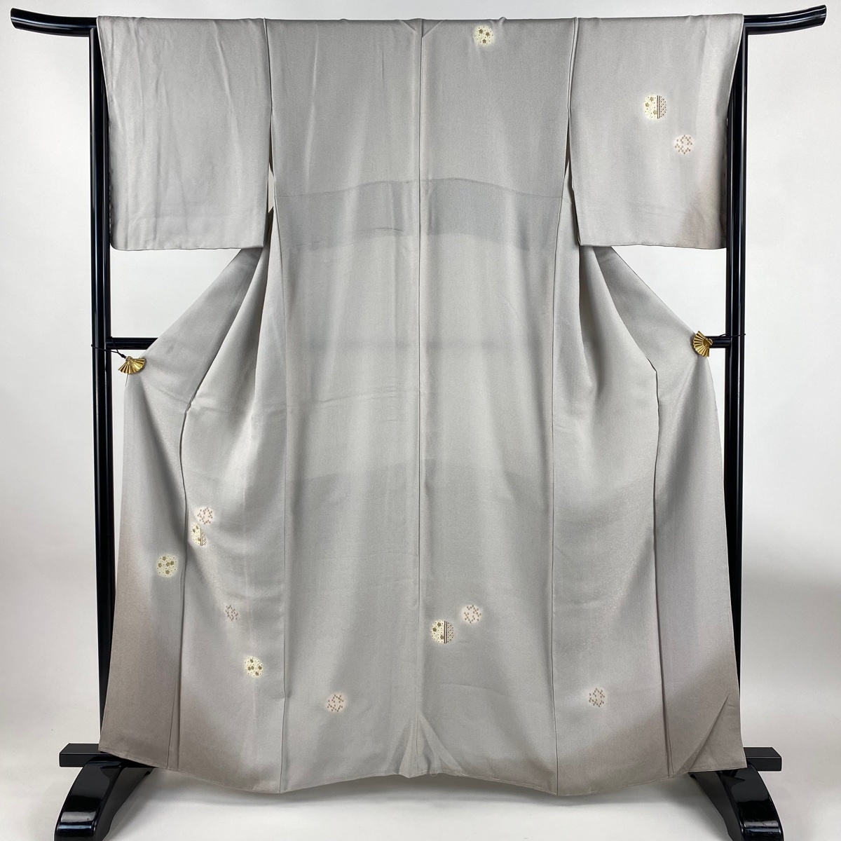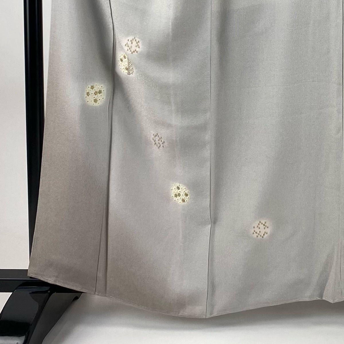 | 付下げ 美品 名品 梅 小花 金糸 刺繍 灰色 袷 身丈163 裄丈66.5 M 正絹 【中古】 |