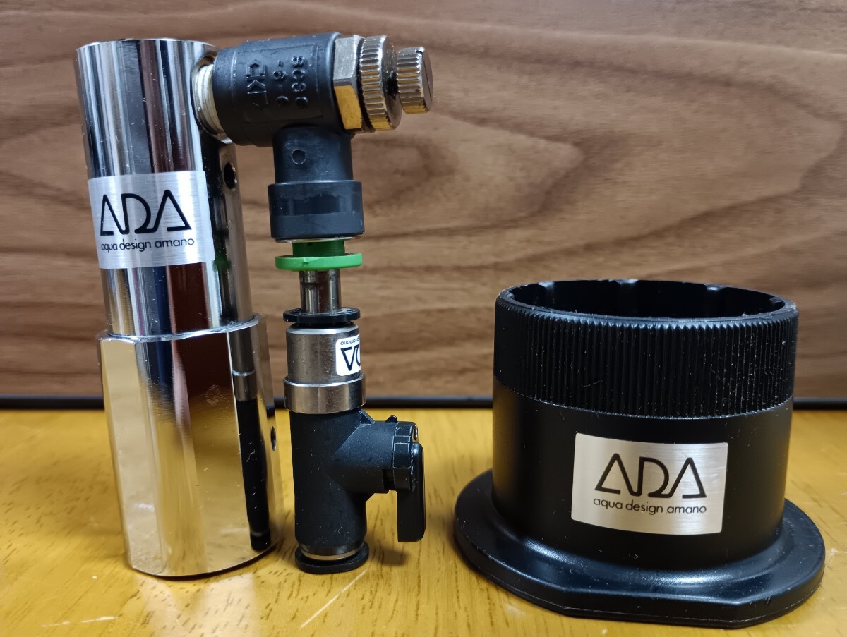 旧ADAアドバンスシステムレギュレーター、ジョイントスティック、ボールバルブのセットにボトルキャップと未使用のCO2ボンベのセットです。
