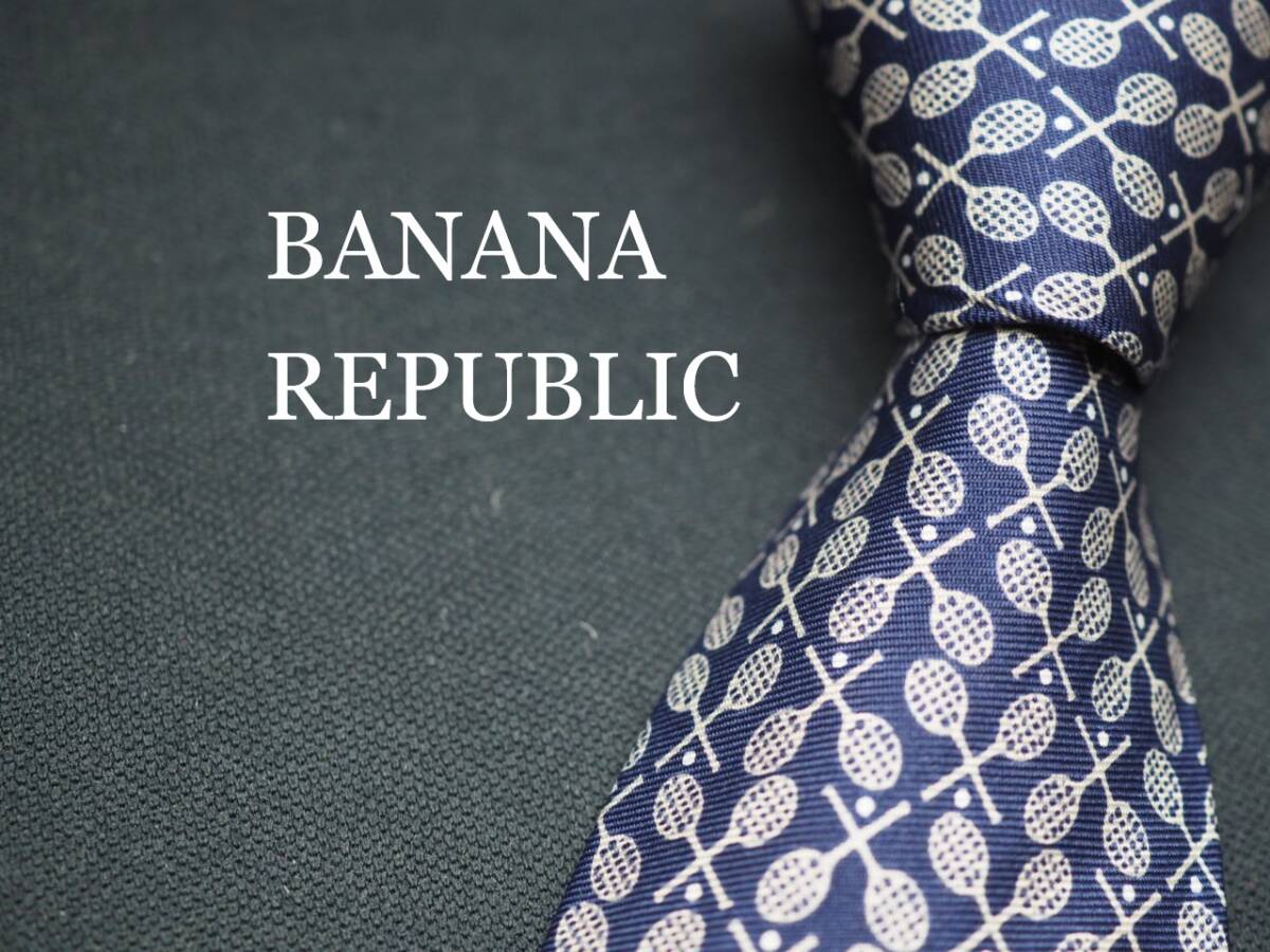 美品【BANANA REPUBLIC バナナリパブリック】 G1741 USA 細身 ネイビー系 SILK ブランド ネクタイ 古着 良品 転売 仕入