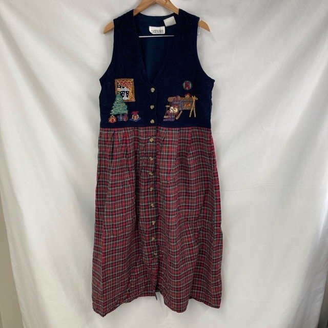B747 ケイシーアンドマックス S 16 アメリカ古着 チェック柄 コットン ロングワンピース レッド CASEY&MAX レディース