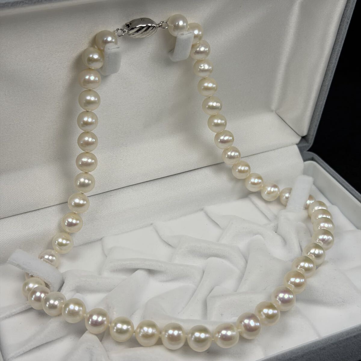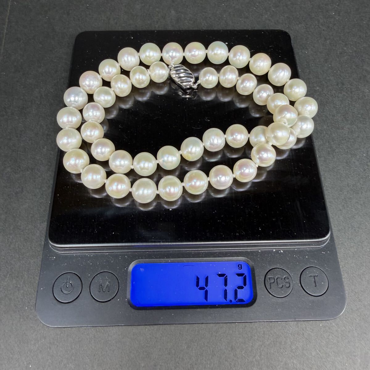 てり強 大珠9.0mm アコヤ真珠 あこや パール 全長約43cm ネックレス ラウンド 925金具 ジュエリー 美品 Pearl necklace jewelry lumi-0199