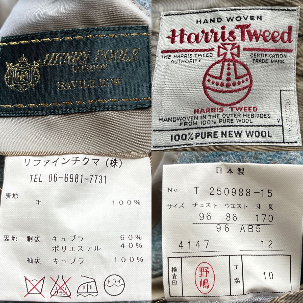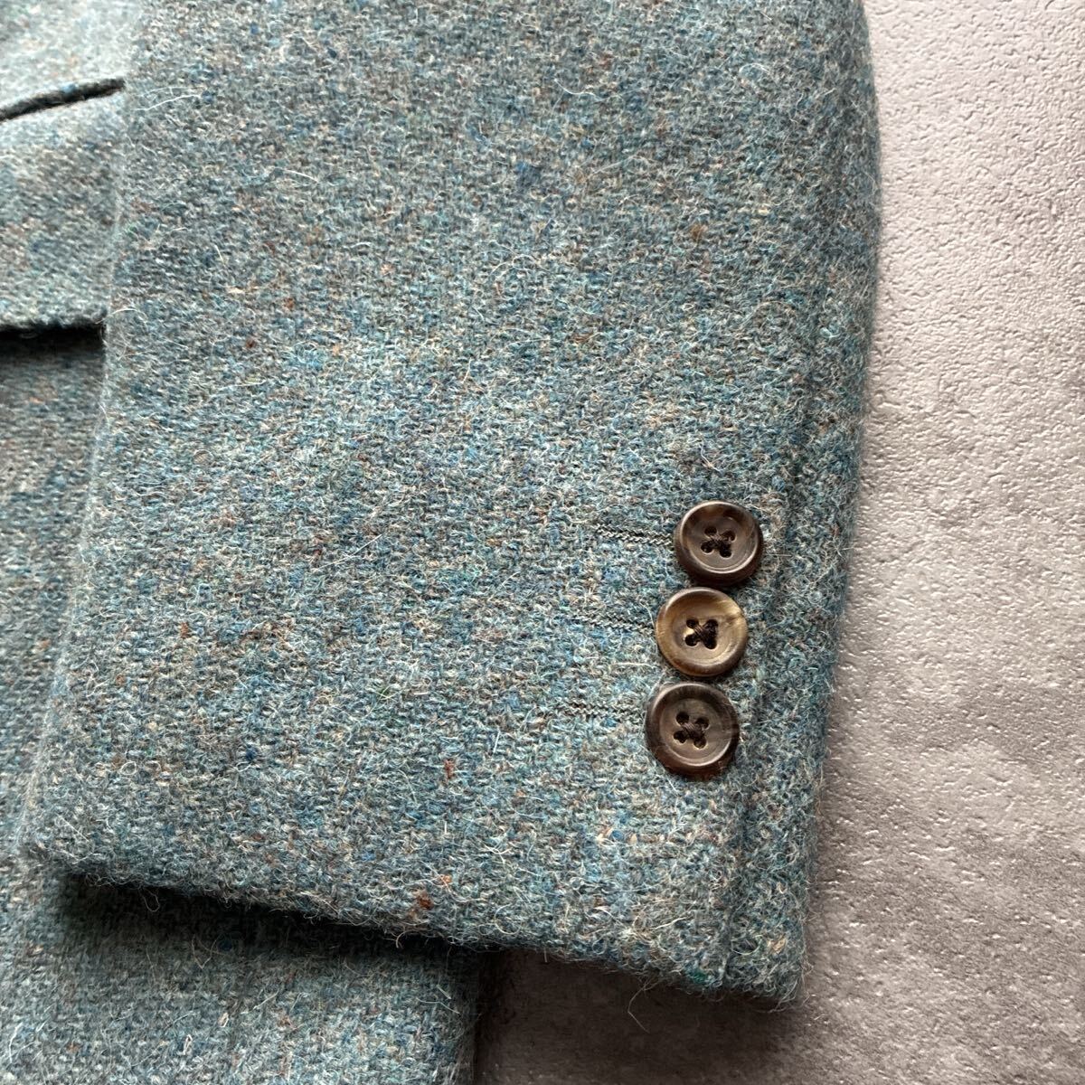 Harris Tweed(ハリスツイード)のテーラードジャケットです。スコットランド・アウターヘブリディーズ諸島で手織りされたハリスツイードマーク付き。