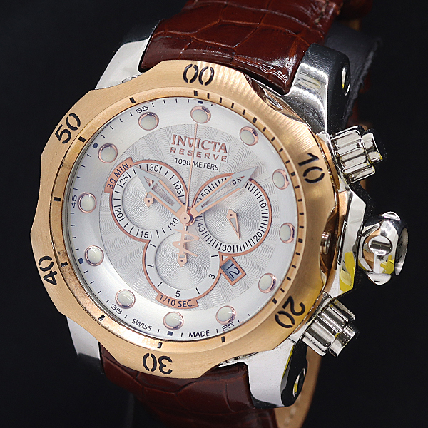 1円 保/箱付 稼働 良品 インビクタ ベノム デイト 0359 クロノグラフ QZ シルバー文字盤 メンズ腕時計 0077000 11MGT MST
