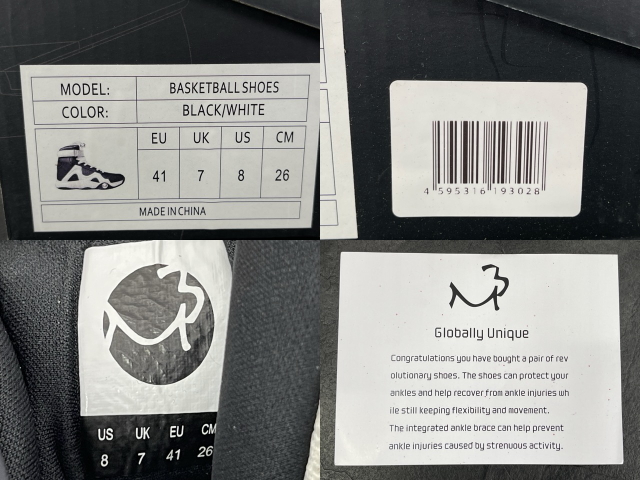 未使用 バスケットシューズ 26cm メンズ用 ホワイト ブラック globallyunique ANKLEBRACE /513996在★15