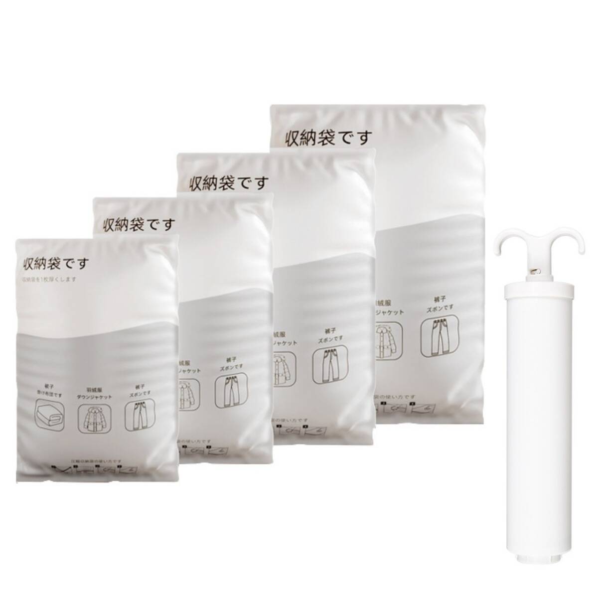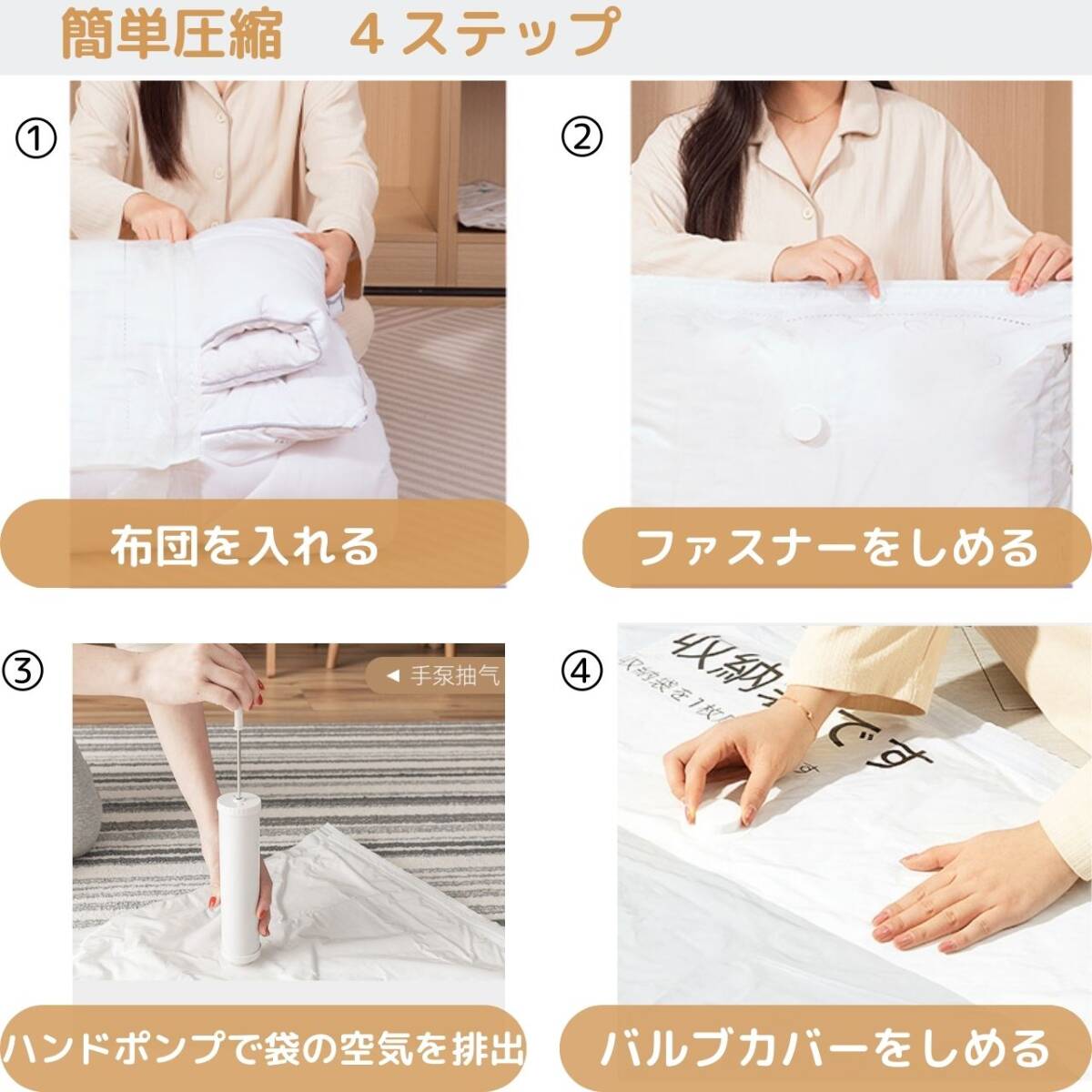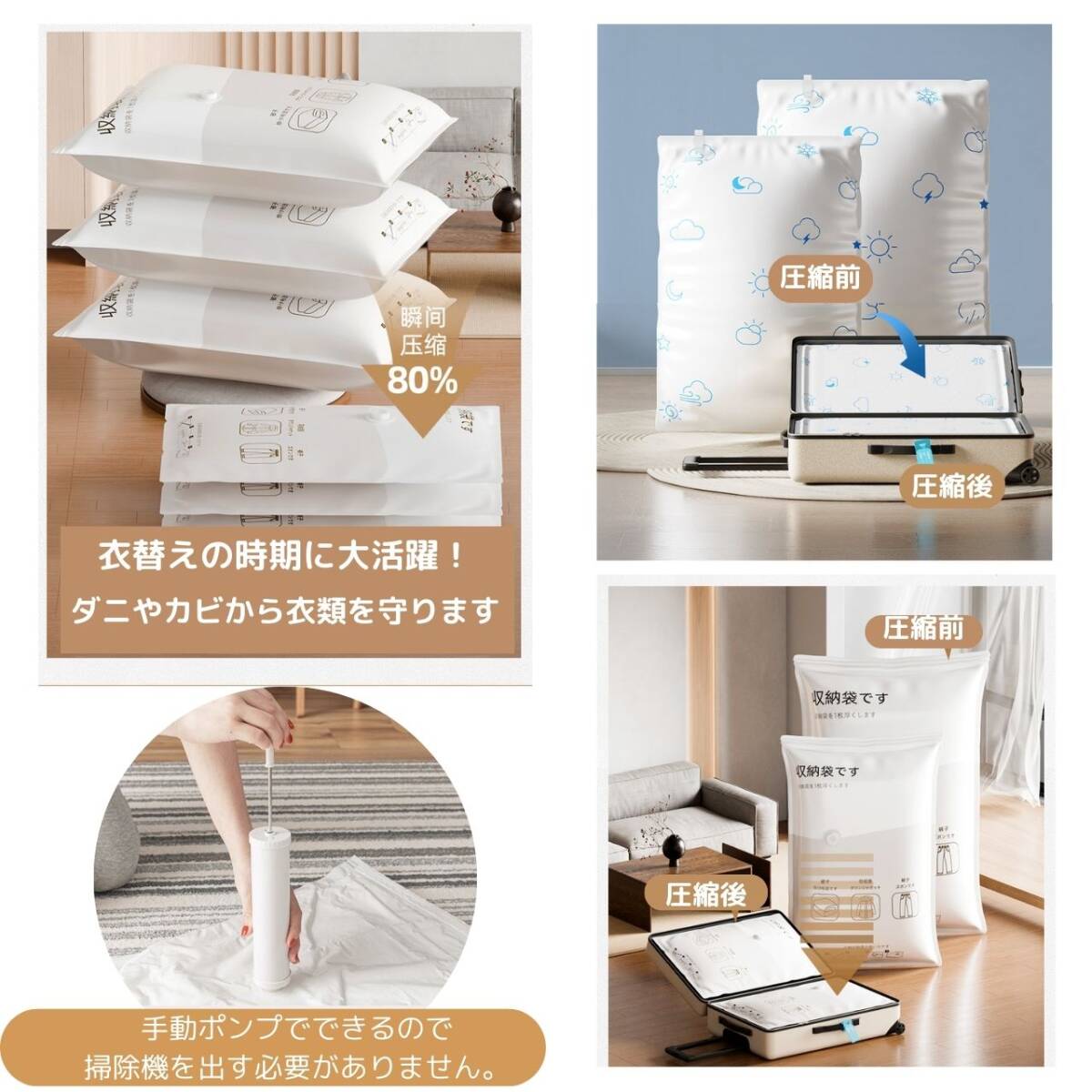 お値下げ!布団圧縮袋 掃除機不要 手動ポンプ付き 8枚セット 【60×40cm 2 70×50cm 2 80×60cm 2 100×80cm 2】防虫 カビ対策 衣類 布団