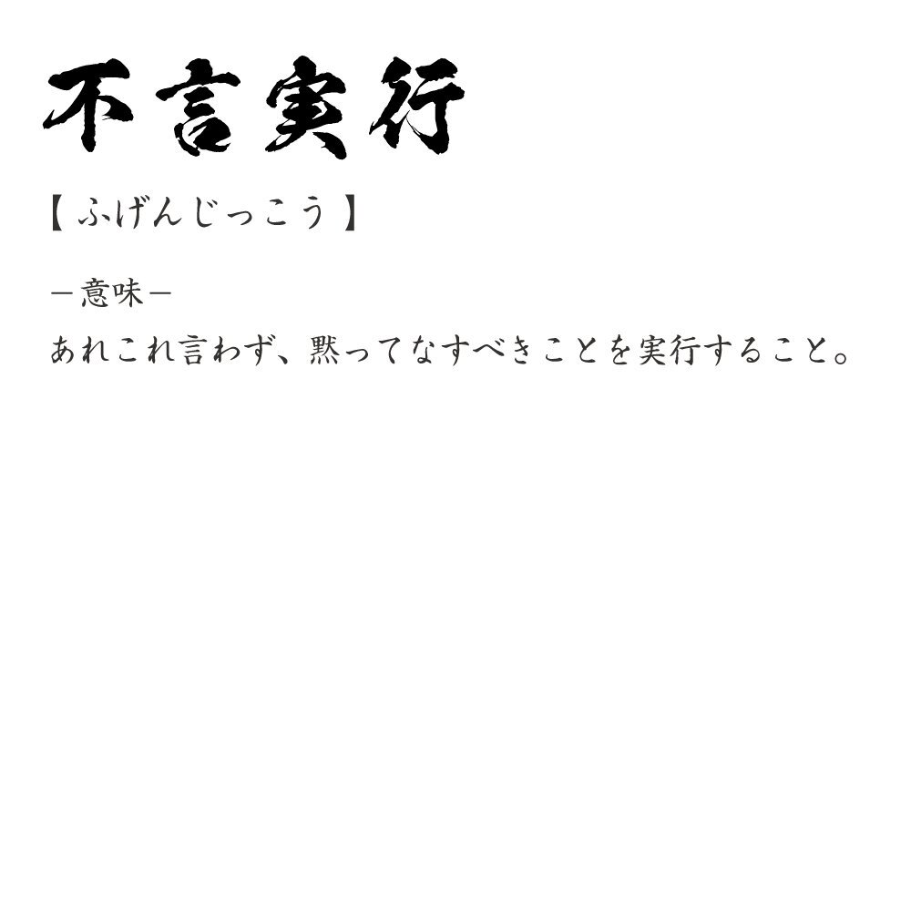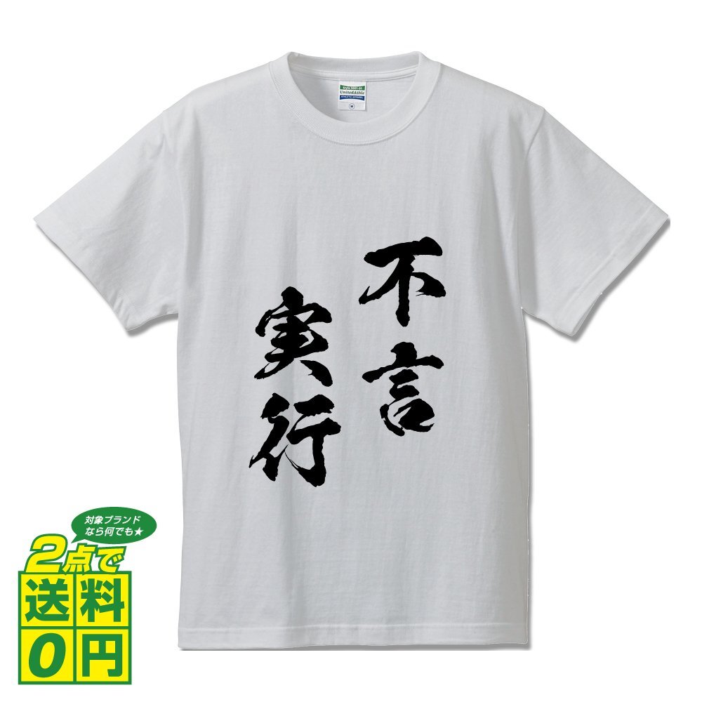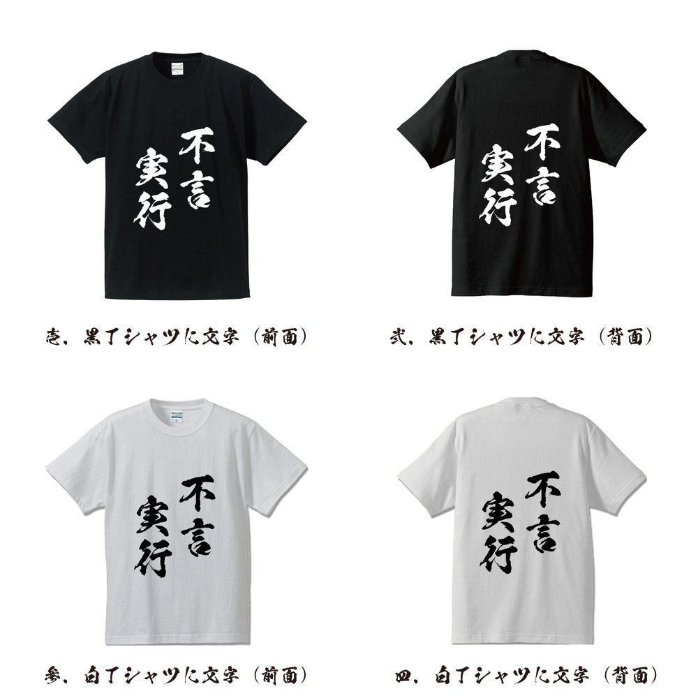 不言実行 (ふげんじっこう) 書道家が書く プリント Tシャツ S M L XL XXL 120 130 140 150 G-S G-M G-L 【 四字熟語 】