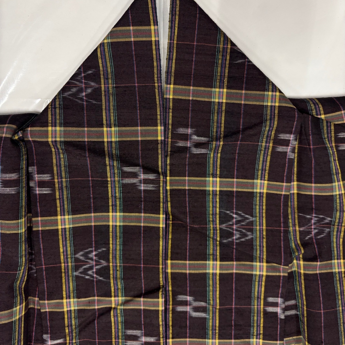 | 紬 美品 名品 やまと 格子 幾何学 濃紫 袷 身丈156 裄丈63 S 正絹 【中古】 |