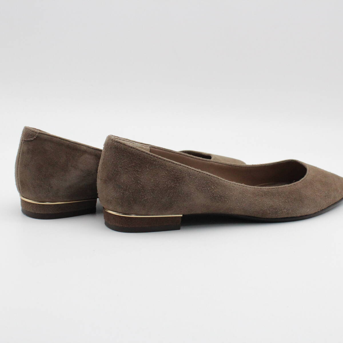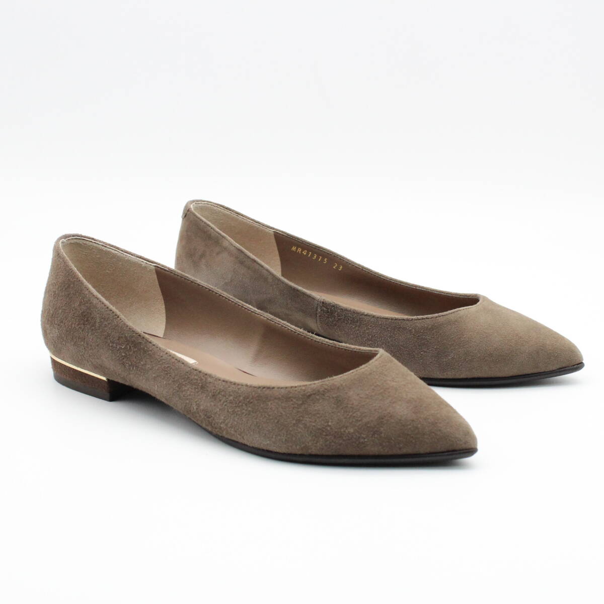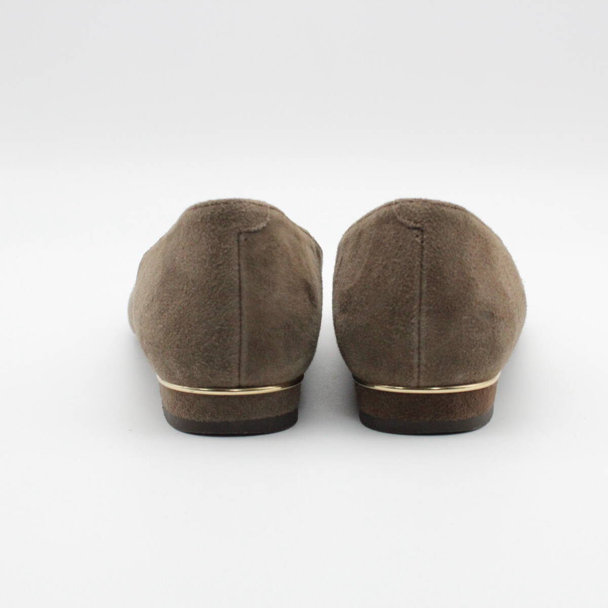 踵に施されたメタルデザインがアクセントになったフラットパンプス