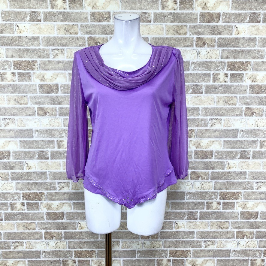 1円 トップス ダンス衣装【ネコポス可】 AvivaRe 紫系 肩パット M 発表会 イベント  中古16353