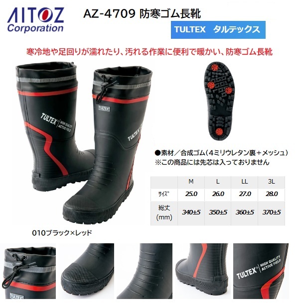 ビックイナバ特価◆アイトス 防寒長靴 AZ-4709【ブラック×レッド・3L・28cm】定価8910円・寒冷地などに最適の品、即決1980円