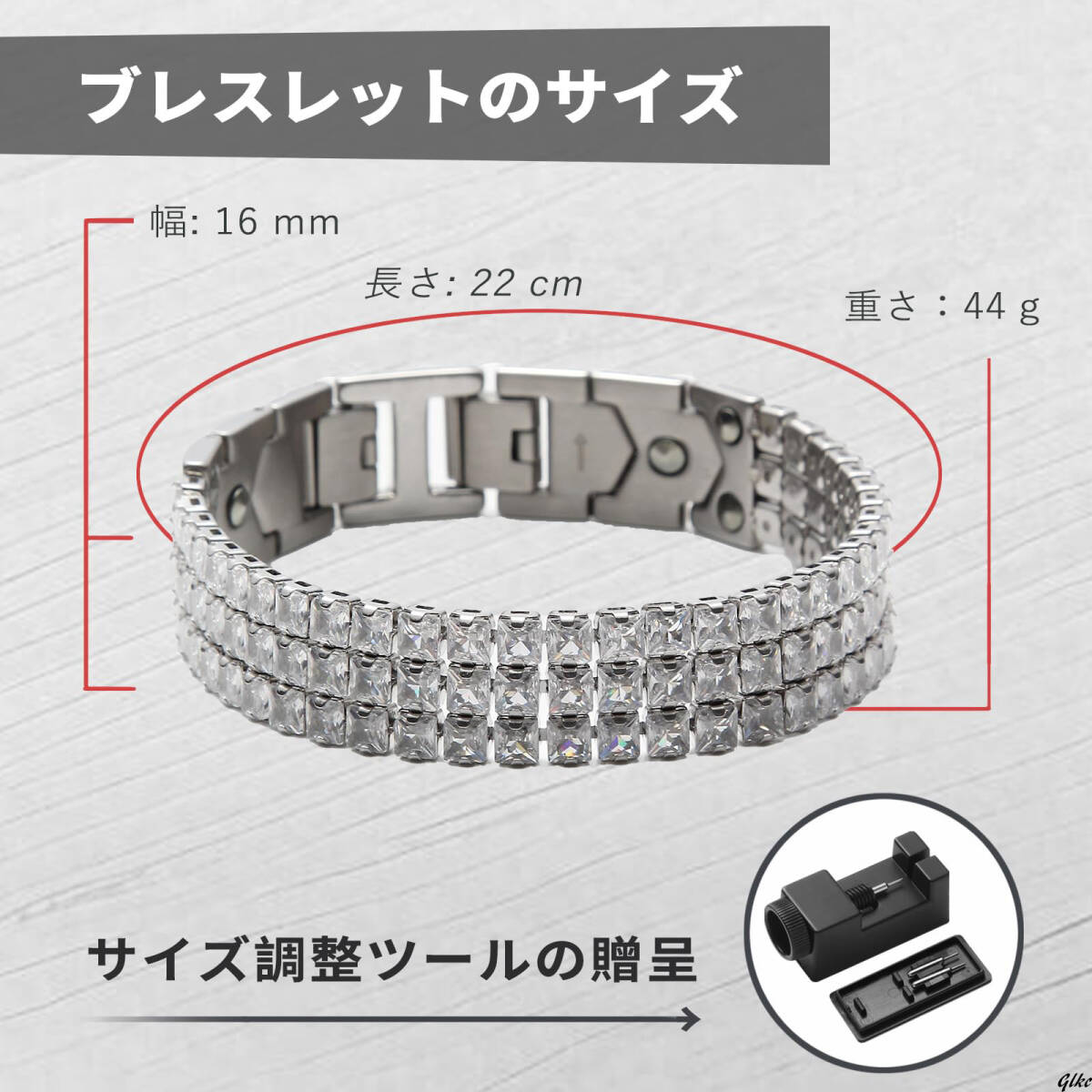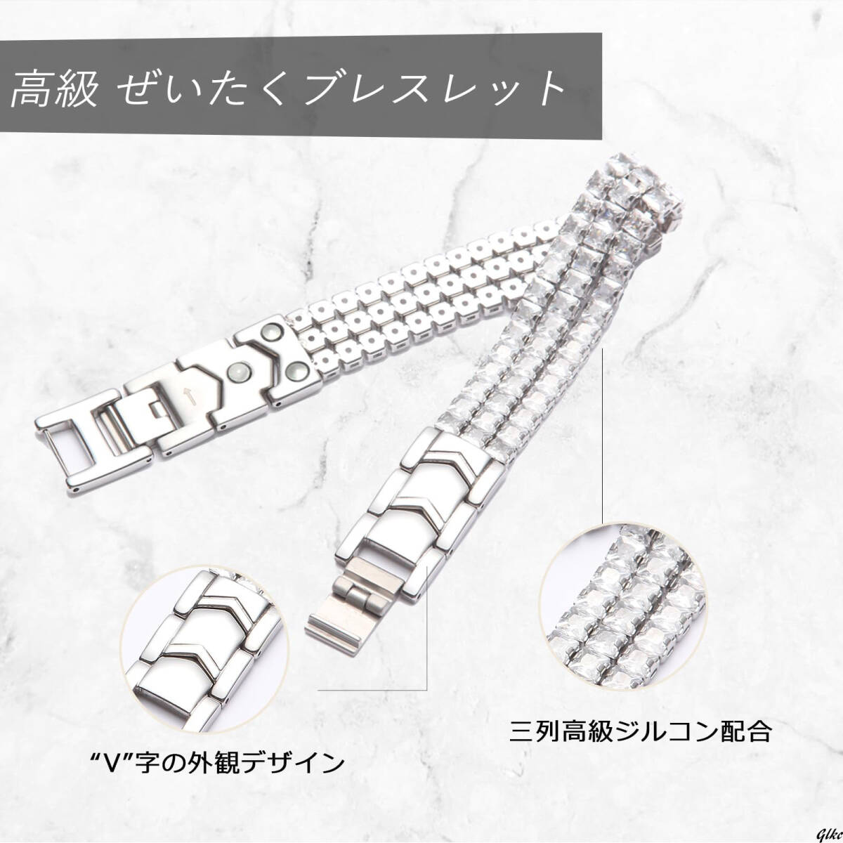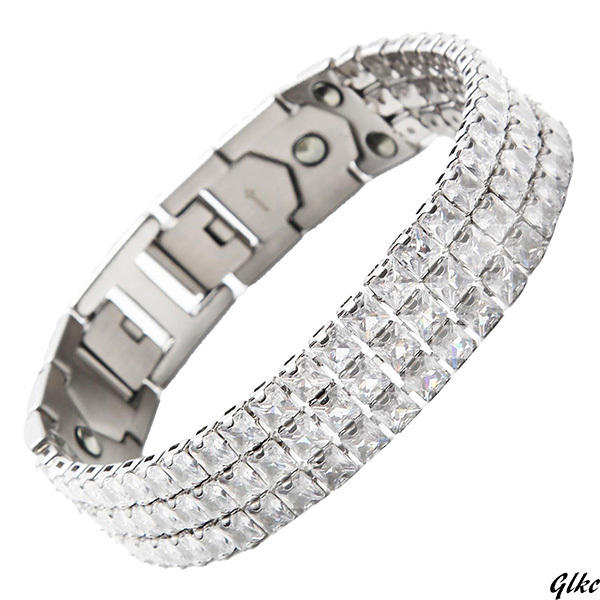 【3列ジルコンの贅沢なデザインで手元を華やかに演出】 ゲルマニウムアクセ 磁気健康ジュエリー サイズ調整可能 プレゼント ギフト