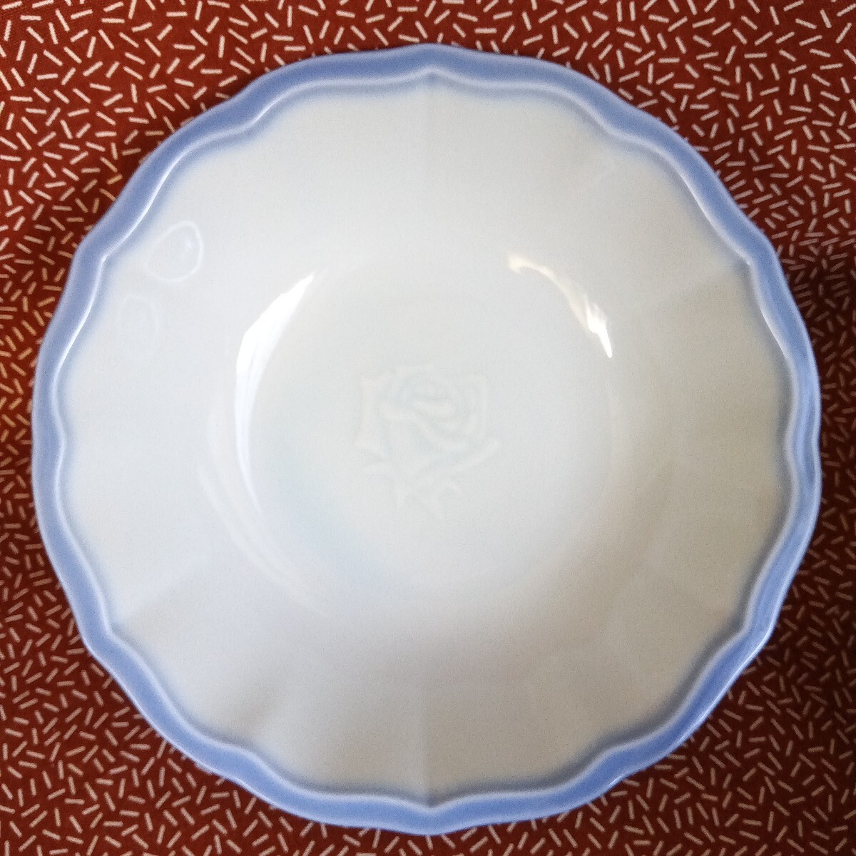 皿底に薔薇の絵柄があり、デザイン的に昭和な感じのお皿と思い、表題に昭和レトロと書かせていただきました。