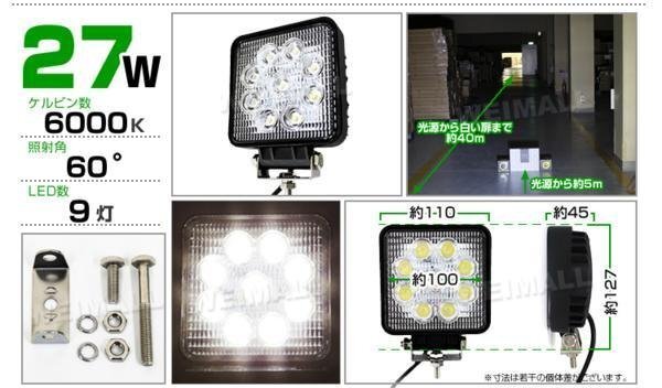 | 色温度: 6000K 動作電圧: 9V~32V 形状: 角型 LED: 3w×9pcs 防水等級: IP67 |