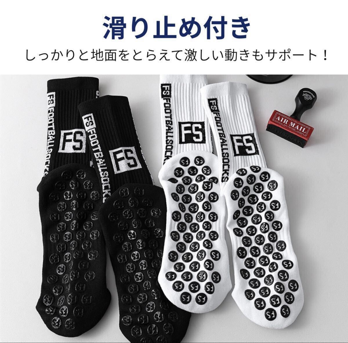 セール☆ グリップソックス サッカー 黒 白 セット スポーツ 滑り止め 靴下 フットサル 部活 ブラック ホワイト 3足 新品
