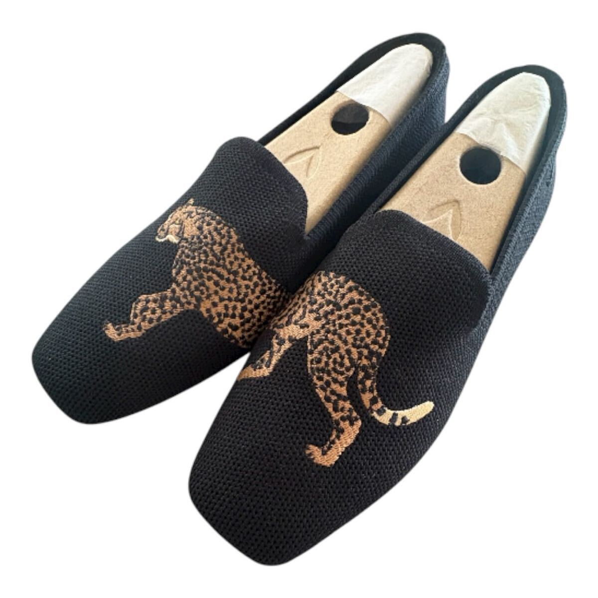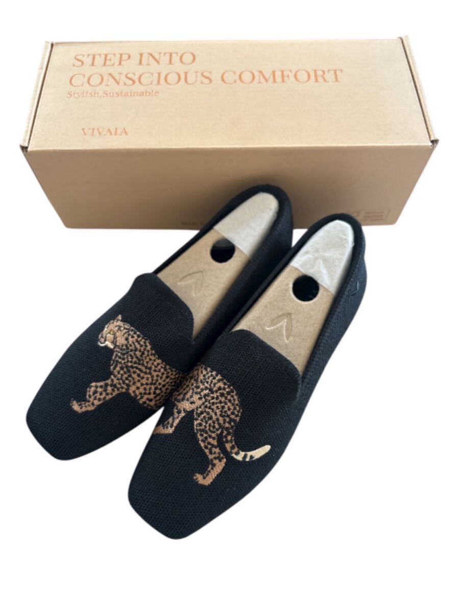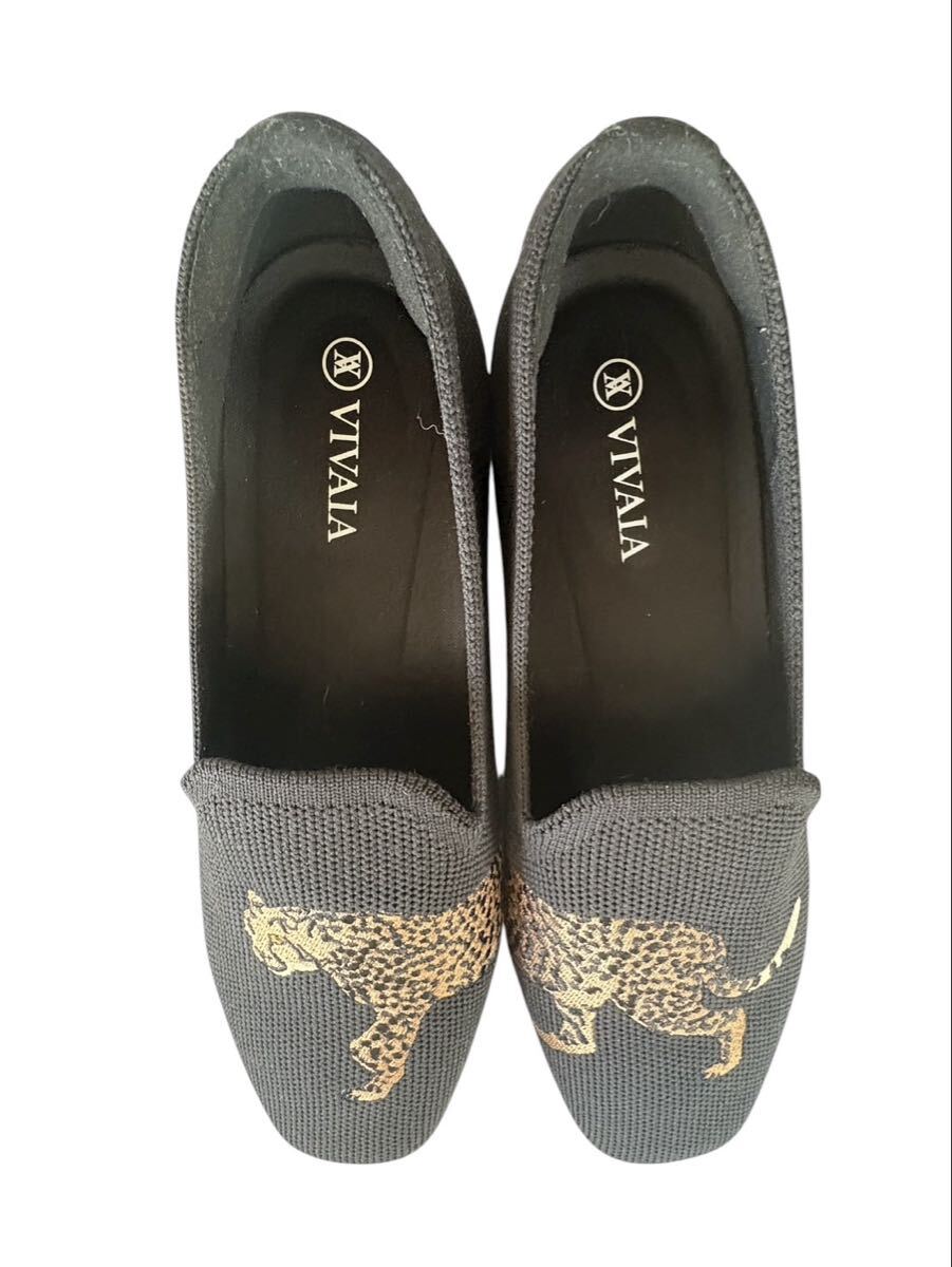 極美品 VIVAIA ビバイア アニマル刺繍 チーター ラウンドトゥローファーサイズ 22cm スリッポン ブラック