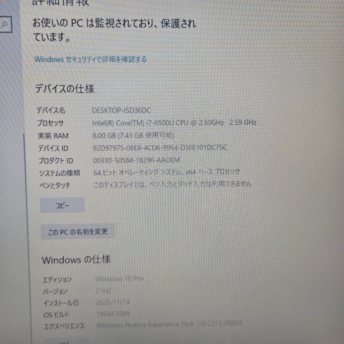 ・CPU:Intel Core i7-6500U @ 2.50GHz