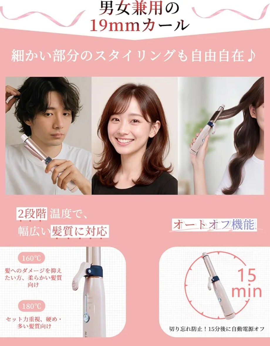 5分オートオフ機能付きで、切り忘れても安心。先端が熱くなりにくく、火傷を防止。マットな質感の上品なデザインは、毎朝のスタイリング時間を「自分を整える特別なひととき」へ。性別を問わず使いやすく、自分へのご褒美にも、大切な人へのプレゼントにもぴったり。