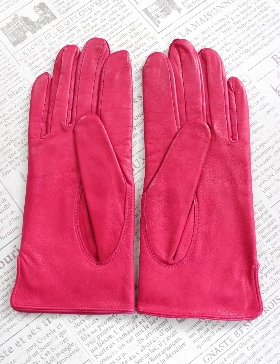 ピンキー&ダイアンの革手袋です。人差し指外側に縫い目のない一枚革の造りで、裏地は暖かみのある生地になっています。手の甲に三本の飾りステッチ、嵌め口付近にブランドロゴのチャームが施されたデザイン、中指先からの全長は約21cm、掌中央部分の幅は約8cm、カラーはマゼンタです。 こちらは試着〜数回使用程度のお品です。目立った痛みなどありませんが細部など見落としがあるかもしれません。新品同様や極美品などを過度に気にされる方は入札をよくご検討ください。 ネコポスで発送いたします。 ノンクレーム、ノンリターンでお願いいたします。 ☆☆必ずご確認ください☆☆ ☆トラブル回避のため、評価数、評価内容等でお取引に不安を感じた方のご入札は削除いたします。ご落札後48時間以内にご決済いただけない方は、落札者都合による取り消しとさせて頂きます。 ☆ご決済の確認が取れましたら2日以内に発送いたします。ラッピングや即日発送などは承りかねます。送料をお安くするために補償がない配送方法を設定している場合があります、配送トラブルに関しては一切責任を負えませんので事前にご了承ください。 ☆繊細な色合いの物などモニターの環境によっては差異があるかもしれません。ご留意ください。ご落札後にサイズが合わなかった、イメージが違った等への対応は一切いたしかねますので、事前によくご検討、ご納得のうえでご入札お願いいたします。不明な点はご質問くださいませ。 ☆ 一点ずつ検品を行なっていますが、未使用の衣類など、ごく稀に着用して初めて傷やほつれが判明する場合があります。中古品を含め、あくまで素人検品のため見落としの可能性を十分ご承知おきください。商品取り違え以外の返品、返金は出来かねますので、事前に同意頂いたうえで、ご入札お願いいたします。 ☆ 取引メッセージを使用したご挨拶や取引状況のご連絡等のお気遣いは不要です。どうぞお気軽にお取引きをお進めください。 | |||