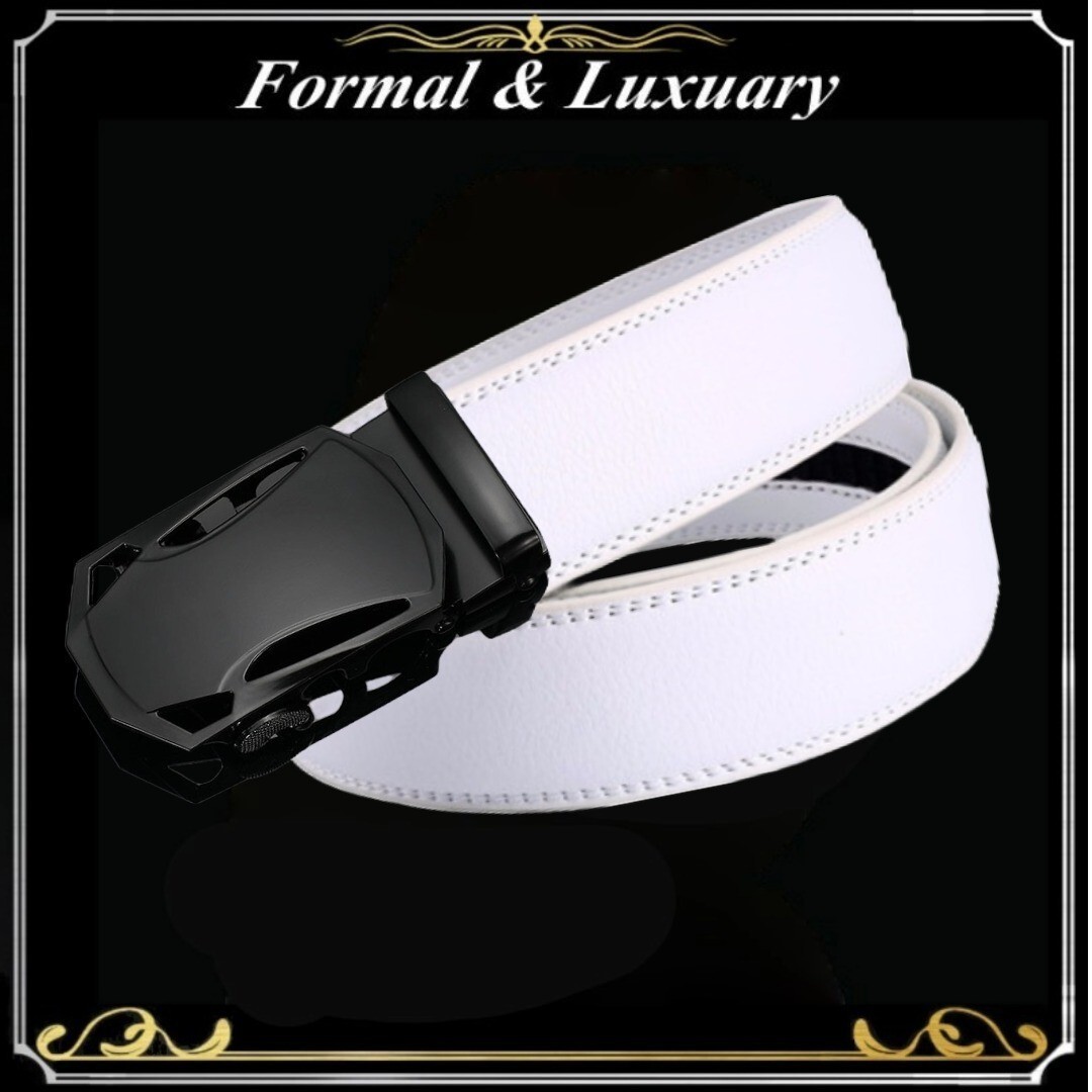 ベルト j58【白】ホワイト 穴なし 無段階調整ベルト ゴルフベルト 人気 オートロック メンズ 革 ジーンズ ビジネス カジュアル